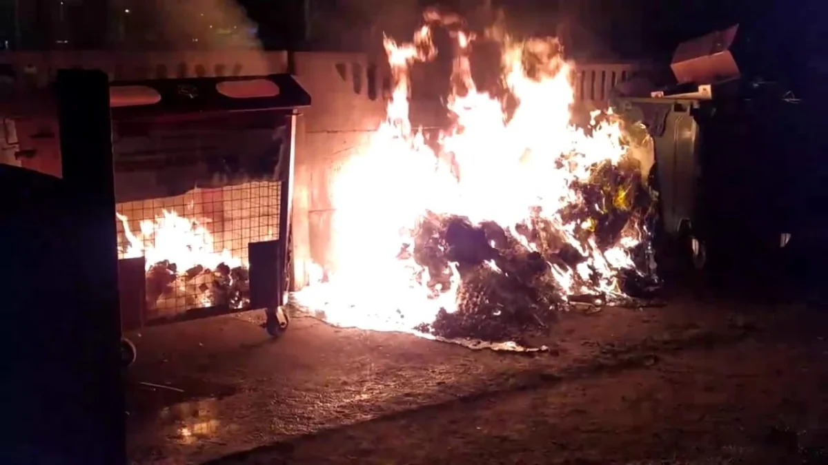 Мусорку подожгли на Стекольной ночью