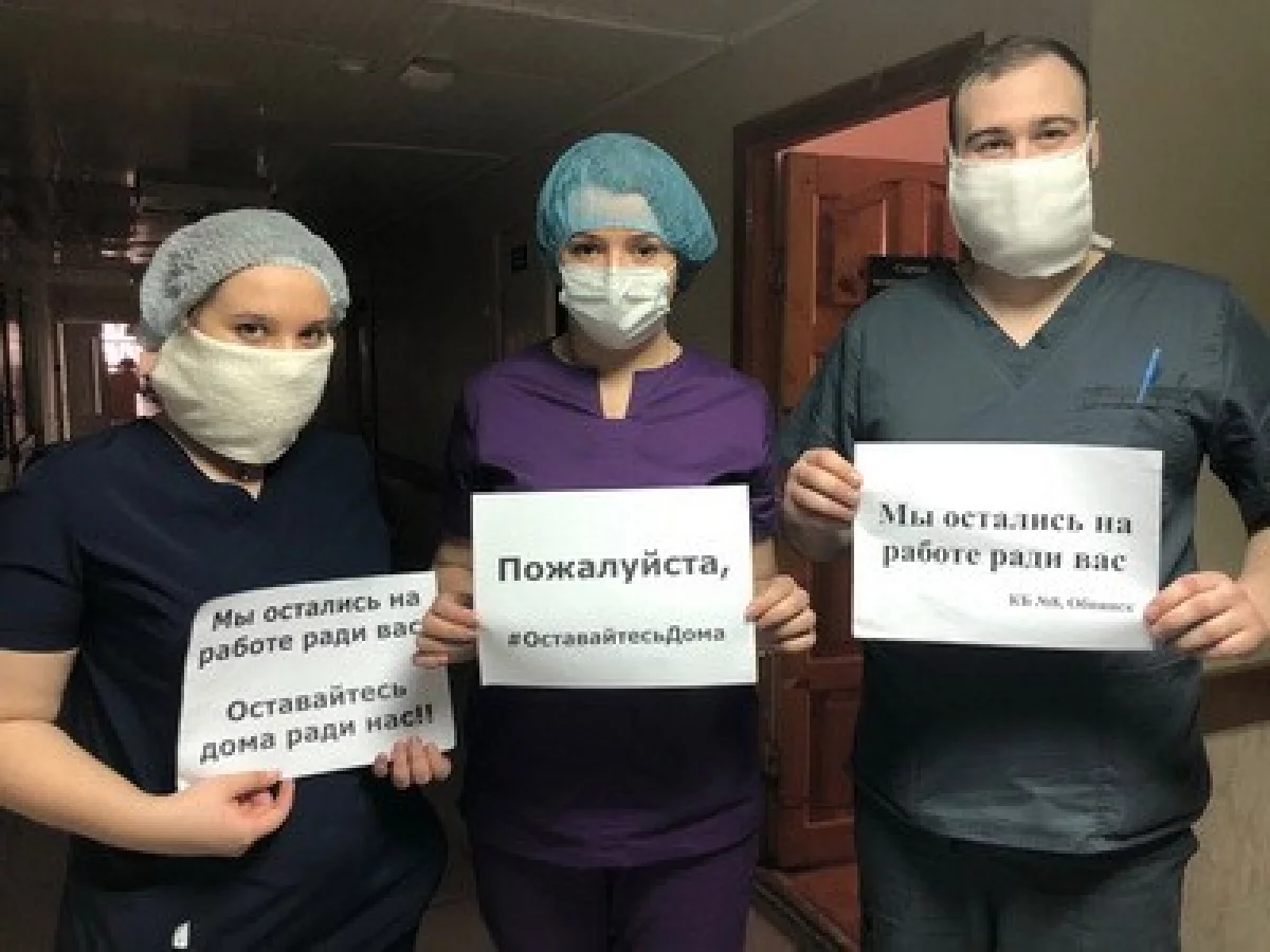 «Мы остались на работе ради вас, останьтесь дома ради нас», - написано на листках медиков Клининической больницы №8.