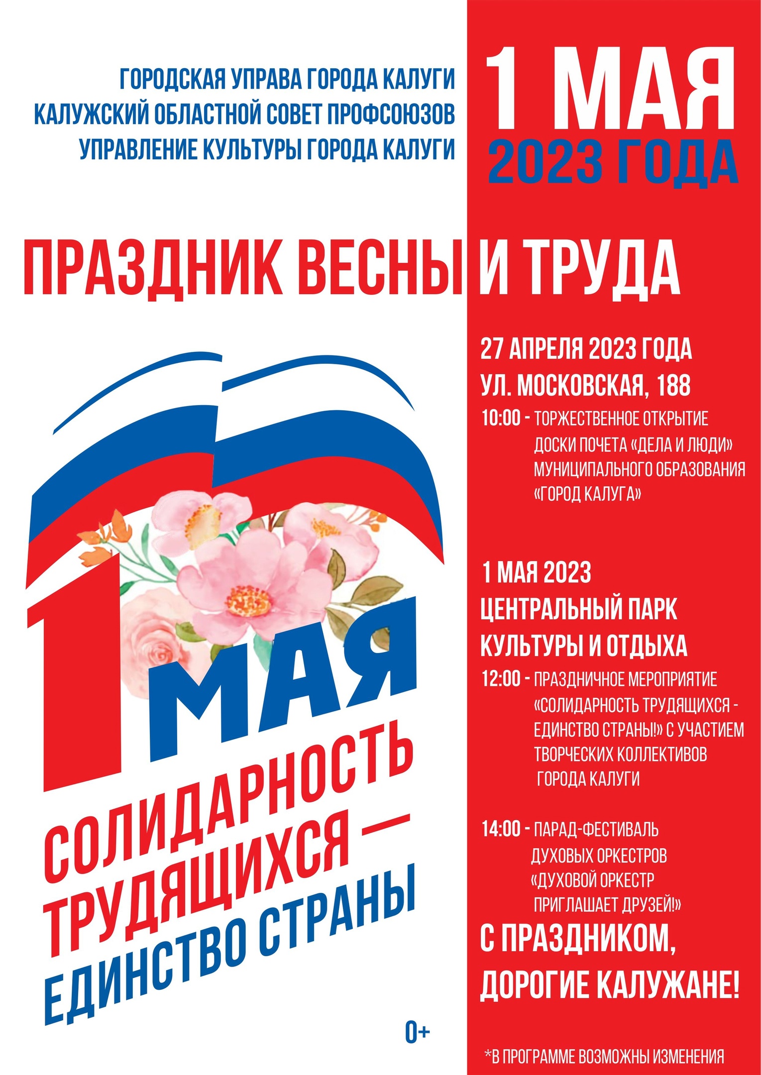 В пятницу, 28 апреля, управление культуры Калуги опубликовало афиши майских праздников.