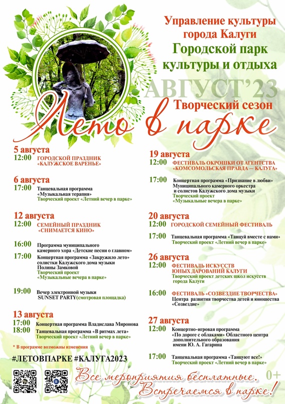 В пятницу, 28 июля, в управление культуры Калуги опубликовали афишу предстоящих праздников в городском парке культуры и отдыха.
