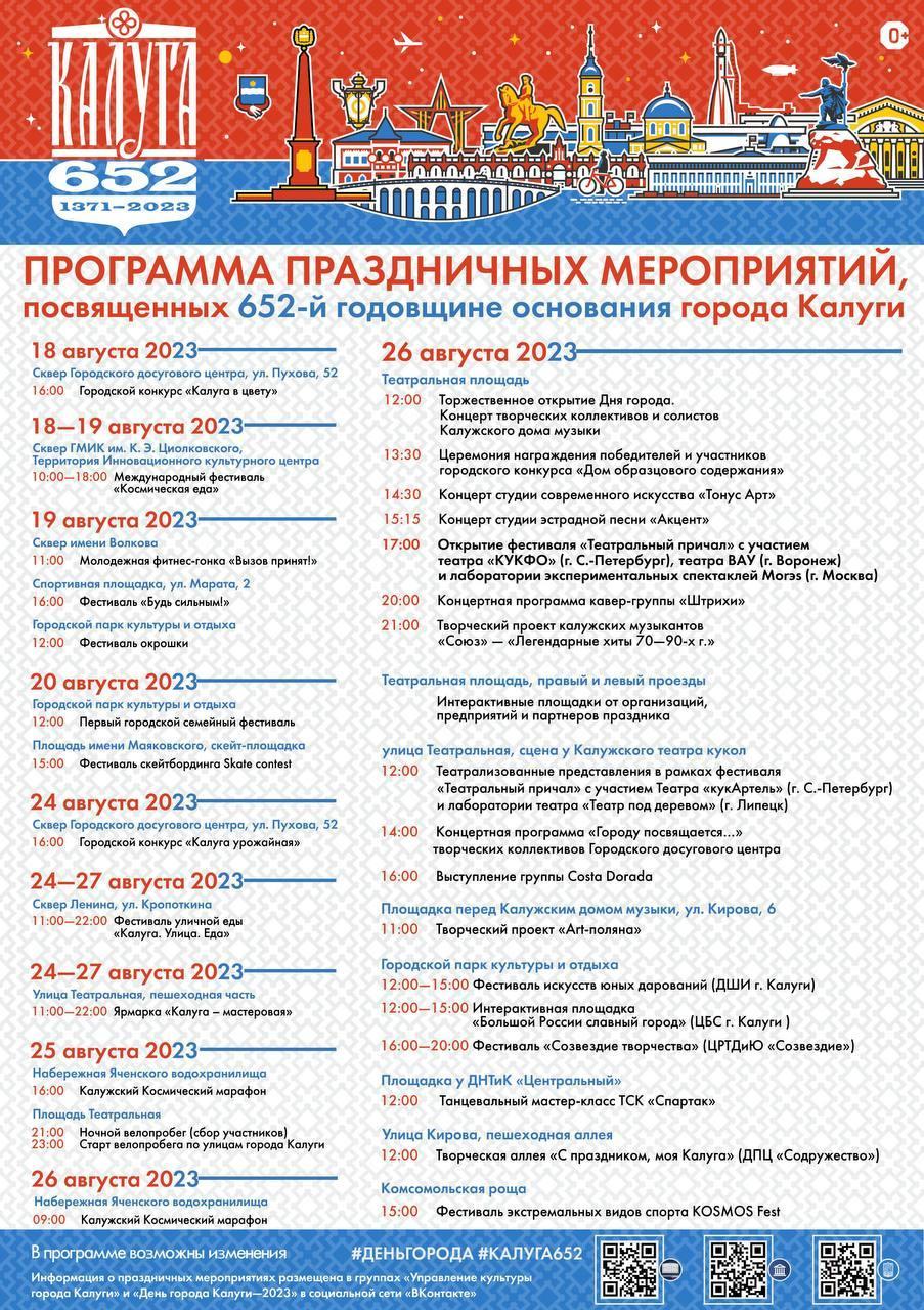В воскресенье, 27 августа, в Калуге отпразднуют День города, сообщили в городской управе.
