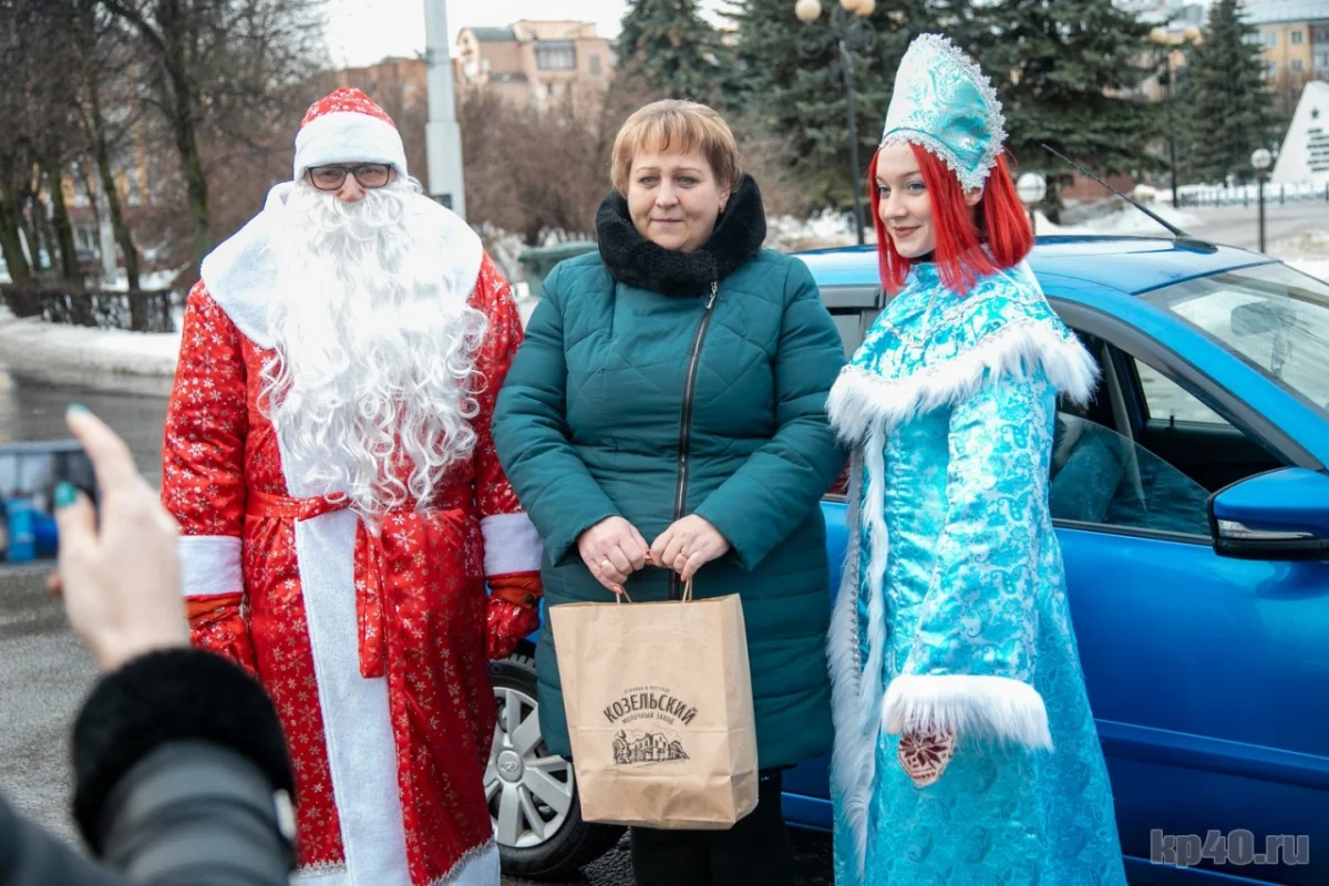 Сотрудники ДПС останавливали машины, проверяли документы, а после автолюбителей поздравляли Дед Мороз и Снегурочка. «Козельский молочный завод» предоставил свою фирменную продукцию и с хорошим настроением и полезными подарками присоединился к поздравлениям водителей.