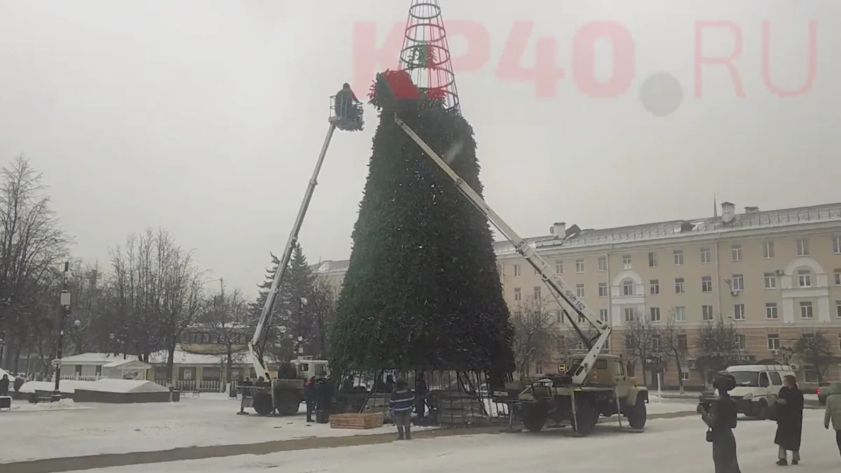 В Калуге устанавливают елку на Театральной площади