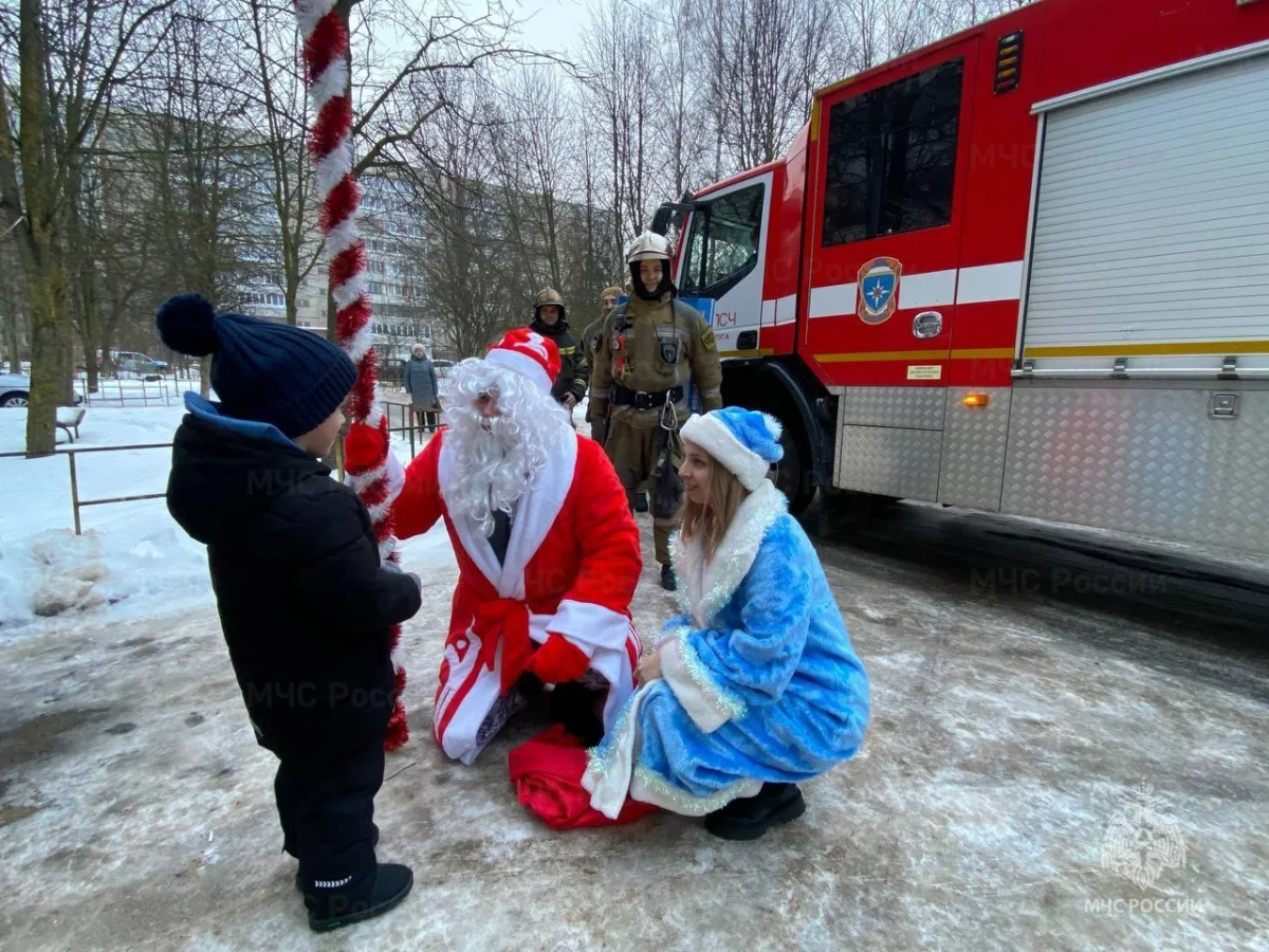 В Калуге Дед Мороз приехал к шестилетнему мальчику на пожарной машине