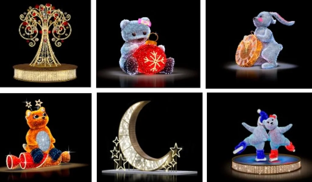 Подрядчик должен будет привести в порядок и смонтировать световые консоли, установить елки, а также установить новые объемно-пространственные конструкции. Так, на площадке у кинотеатра «Центральный» появится чудо-дерево, на Театральной площади – котик, в парке у ТЮЗа – зайка, в центральном парке – мишка и месяц.