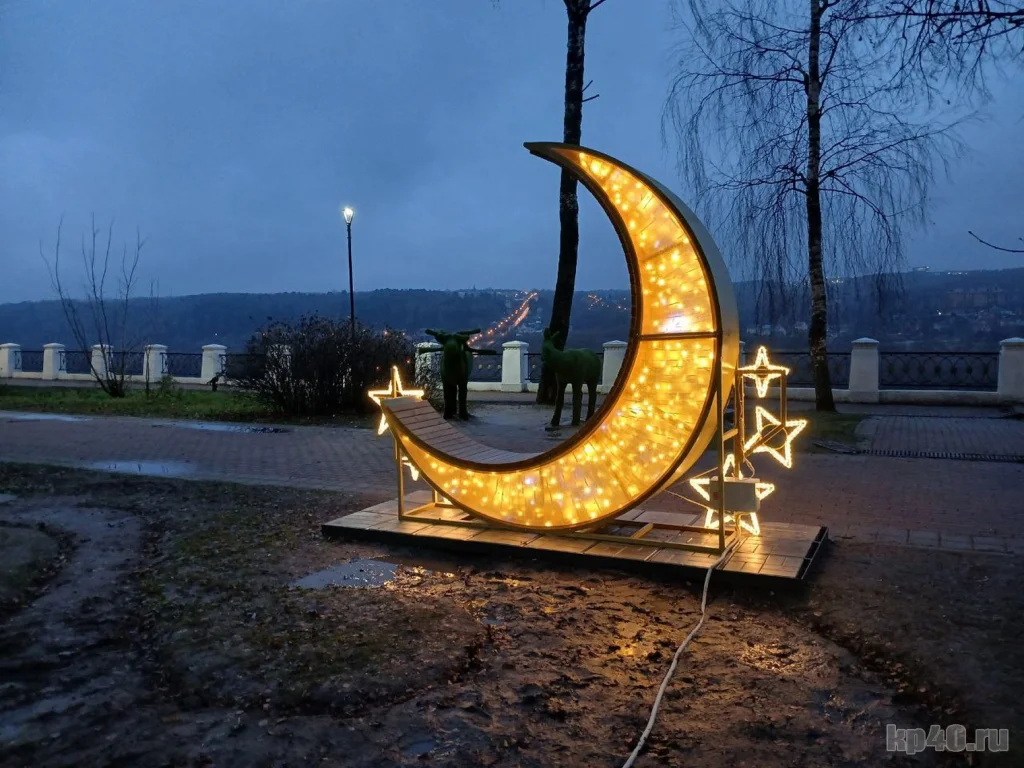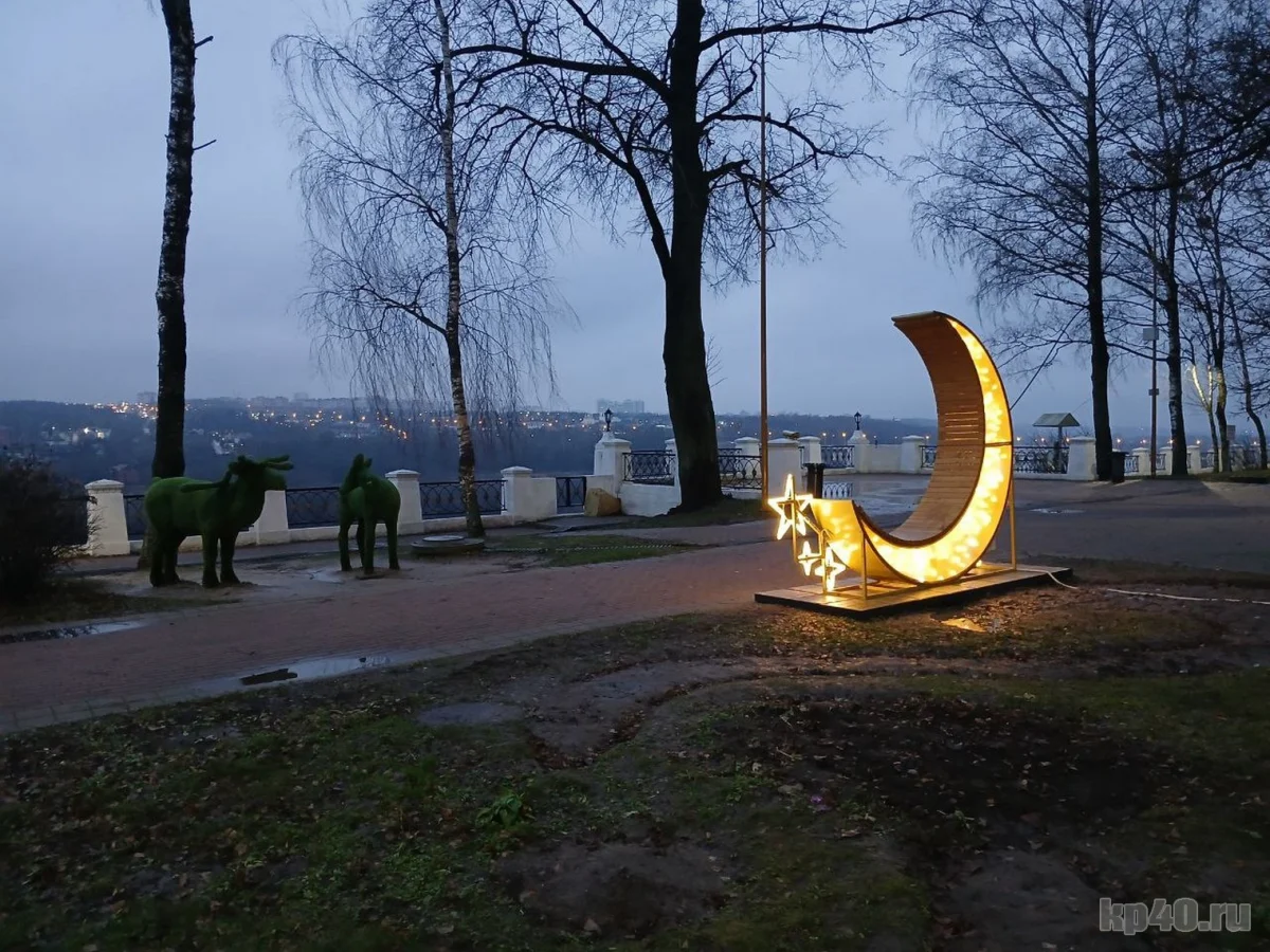 Также в парке установили новые светящиеся фигуры – месяц и елочный шарик.