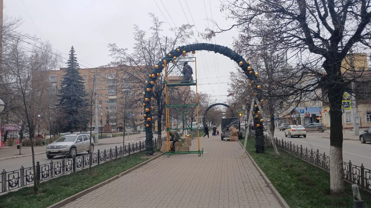 Монтаж новогодних украшений на участке между площадью Победы и улицей Ленина проходил на выходных.