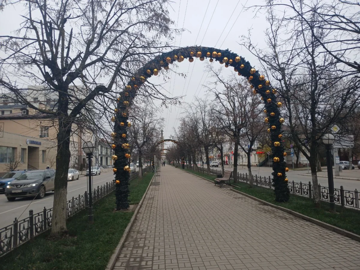 В Калуге аллею на улице Кирова украсили золотыми шарами