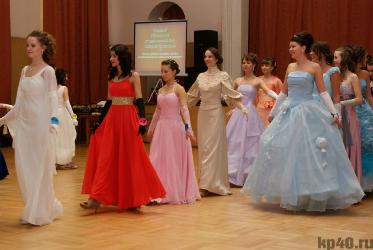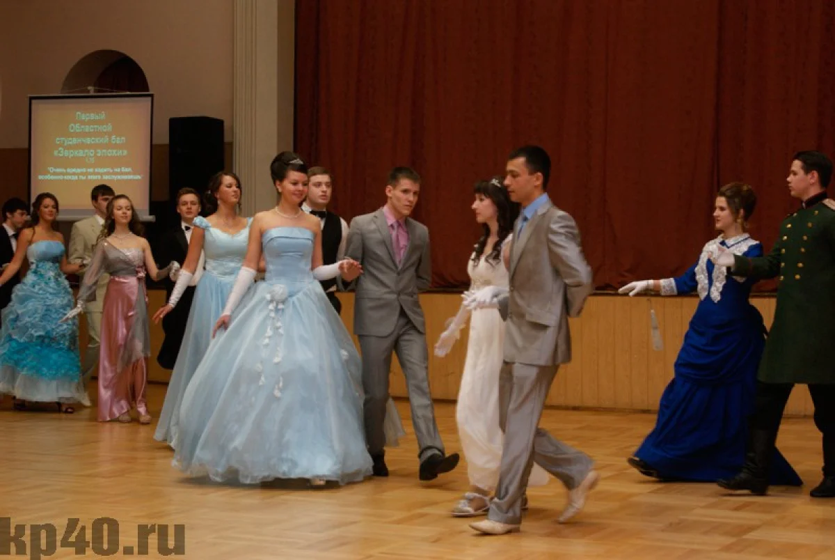 Первый студенческий бал «Зеркало эпохи» прошел в Калуге в пятницу, 8 марта. Молодые люди танцевали в областном молодежном центре под неофициальном девизом «главное желание». Организаторы не требовали от участников ни хореографической подготовки, ни актерских данных. Главное, чтобы костюм был хоть немного подходящий.