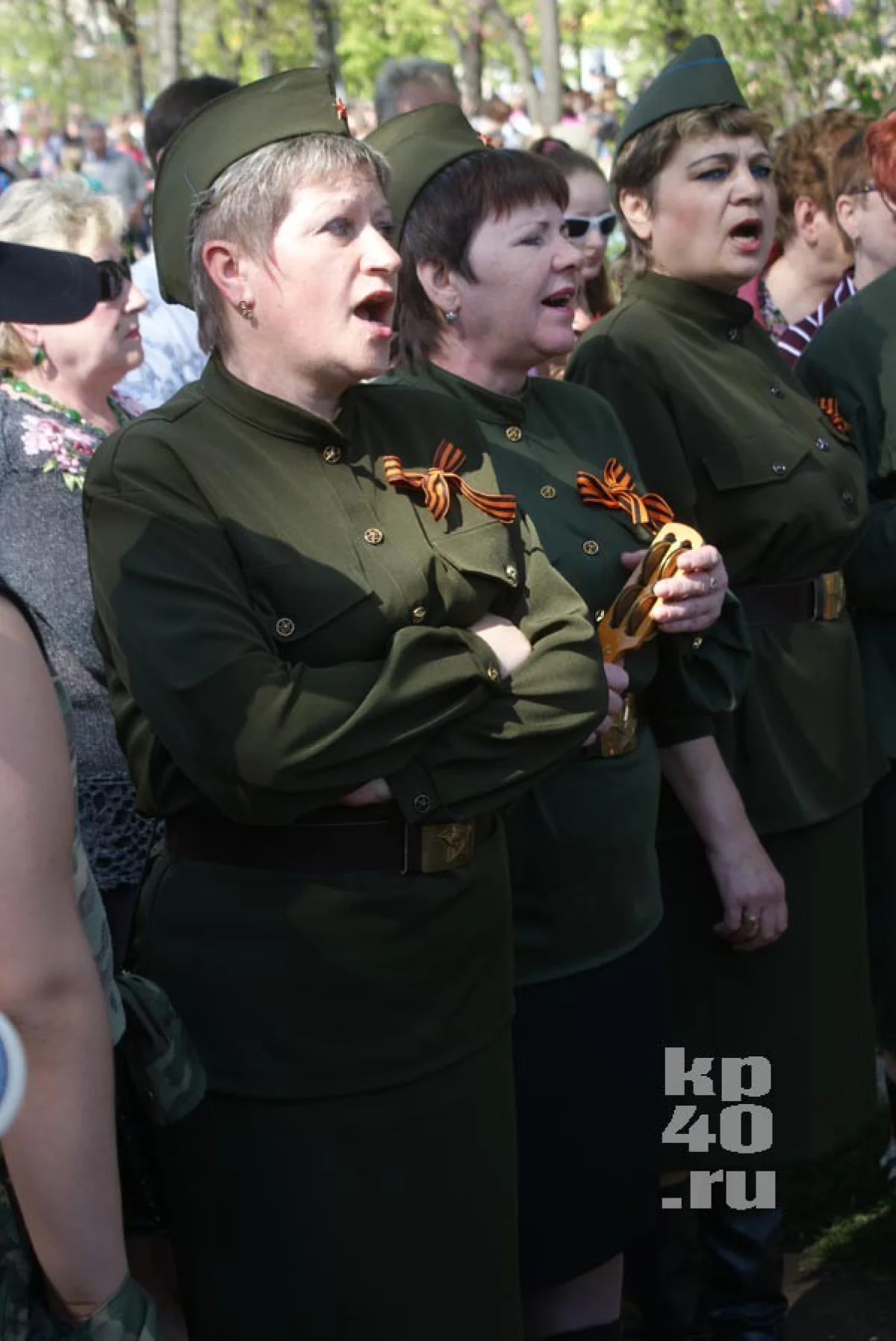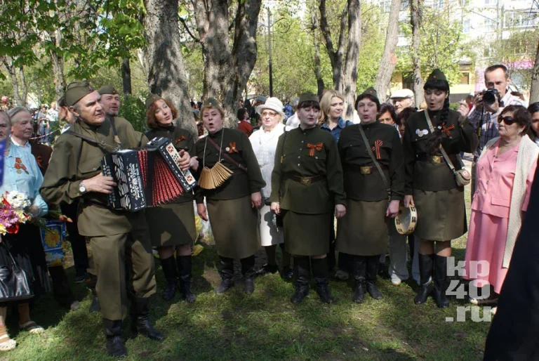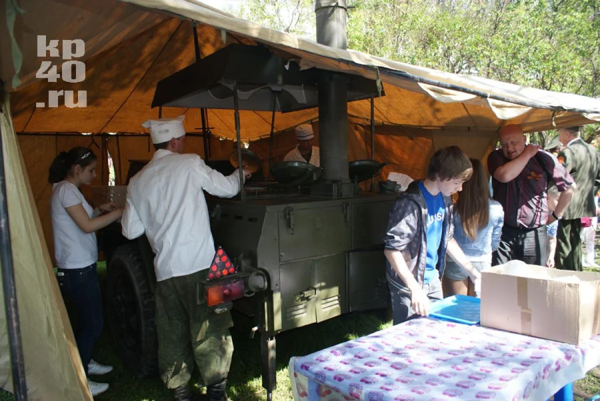 После митинга ветераны и жители Калуги возложили цветы к могиле неизвестного солдата. Затем на площади исполняли песни фронтовых лет и кормили всех желающих кашей из полевых кухонь.
