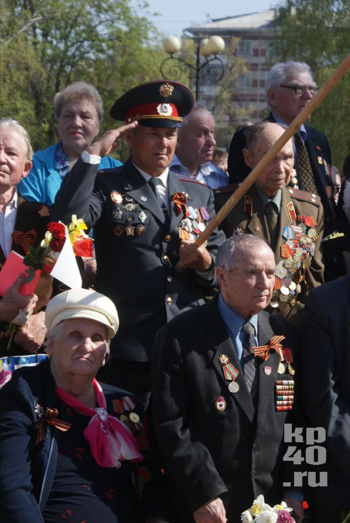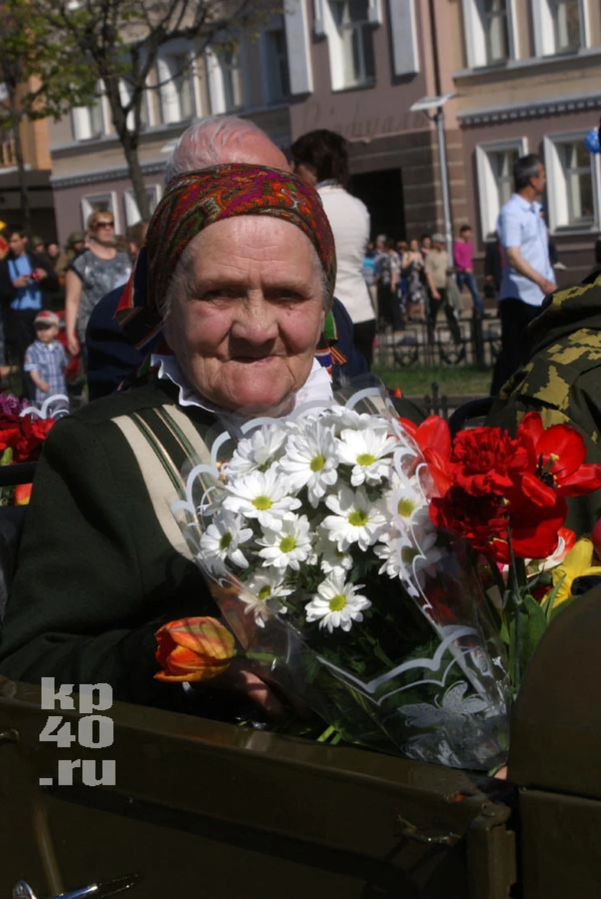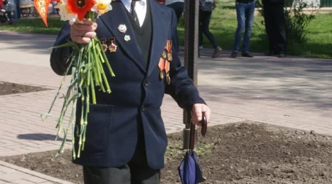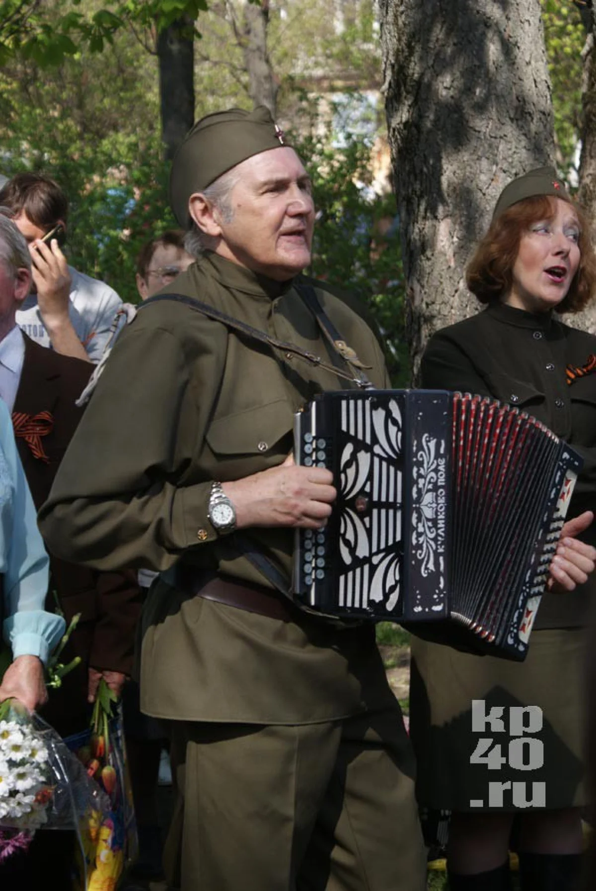 В честь праздника в городе дарили цветы ветеранам и исполняли фронтовые песни.