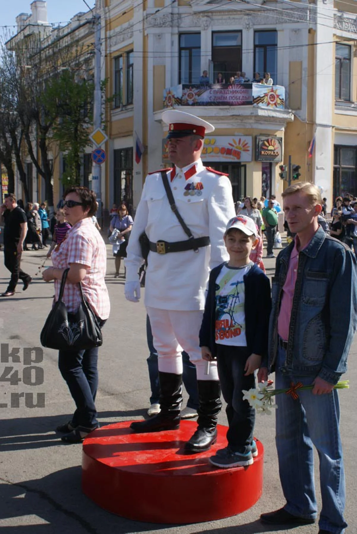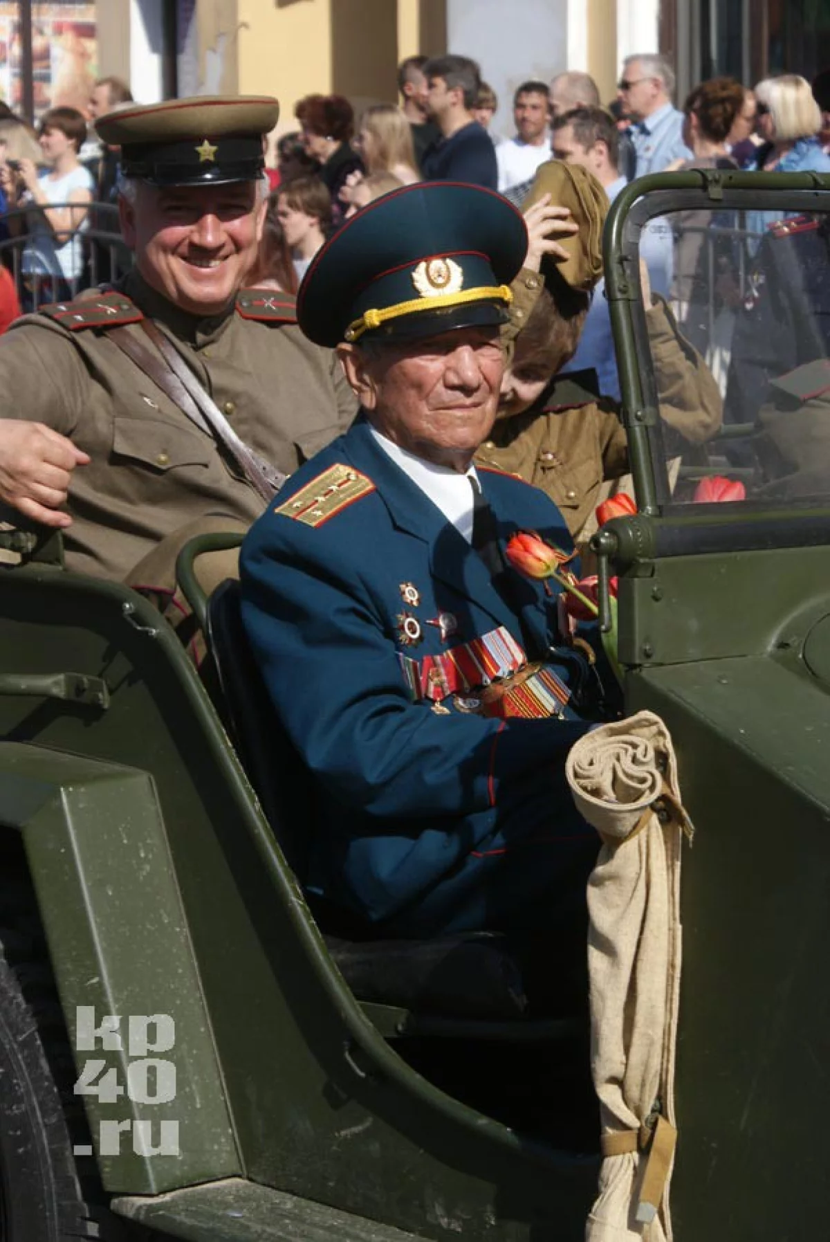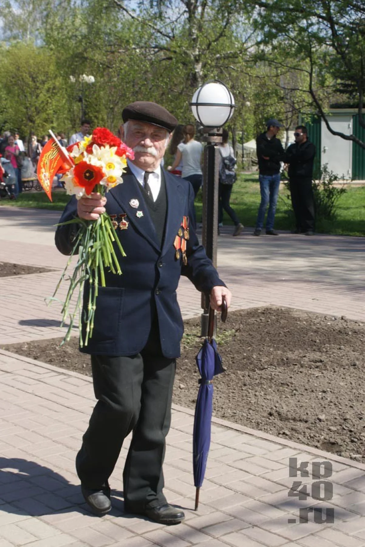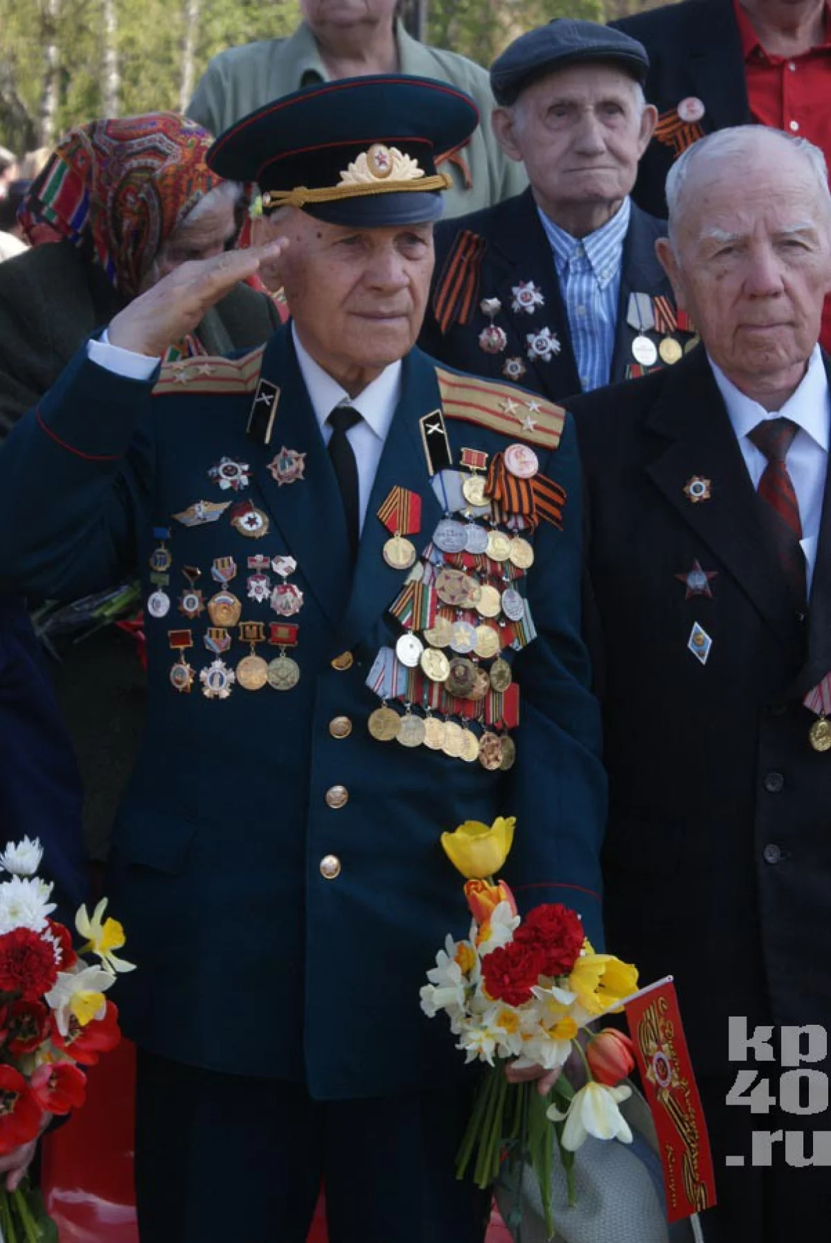 В честь праздника в городе дарили цветы ветеранам и исполняли фронтовые песни.