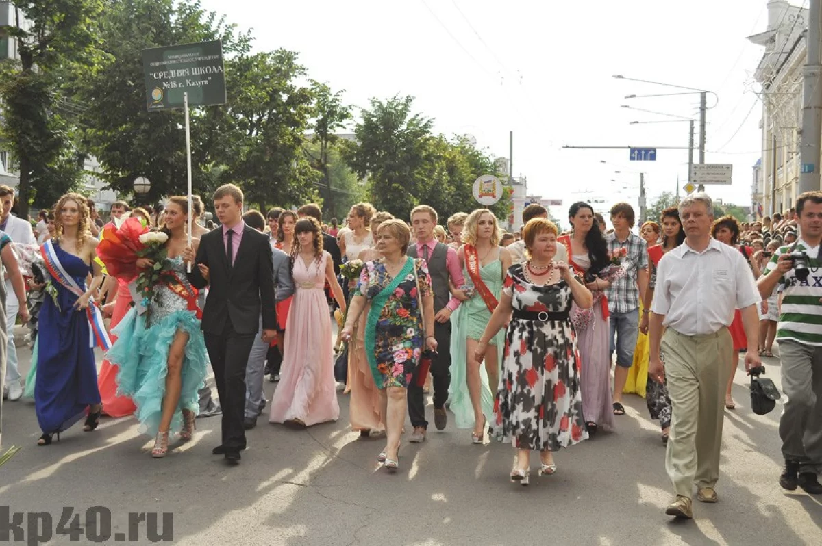 Вечером во вторник, 25 июня, в Калуге прошло традиционное шествие выпускников. Почти полторы тысячи школьников прошли по улице Кирова к площади Победы.