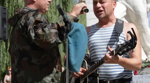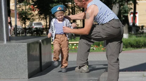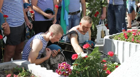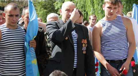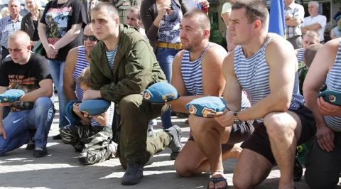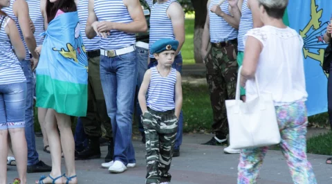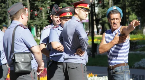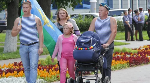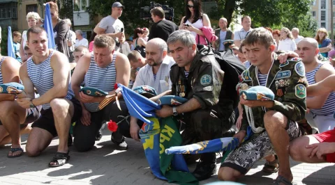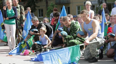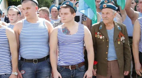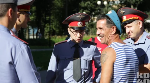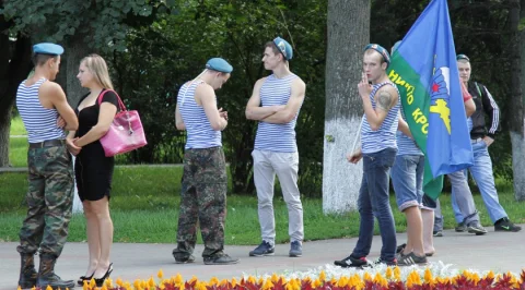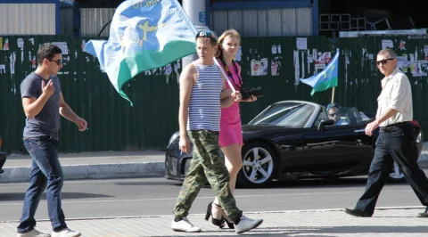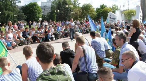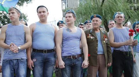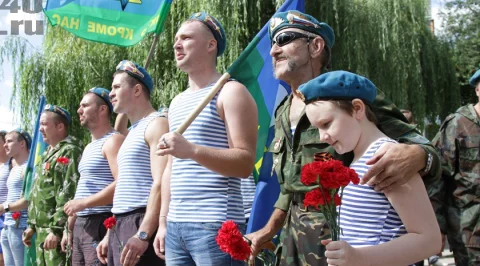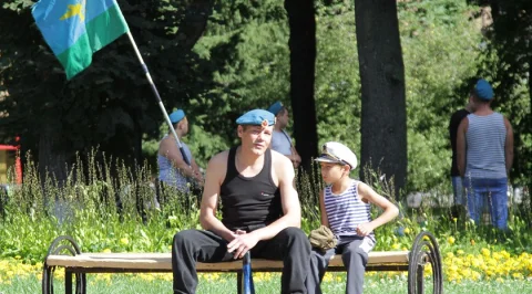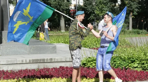 Бойцы ВДВ разных годов начали собираться в сквере Мира еще в 9 утра. Многие приходили вместе с женами и детьми. Традиционный атрибут празднующих – тельняшка. Полиции в сквере также было много, но все общались мирно.