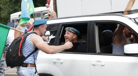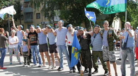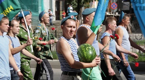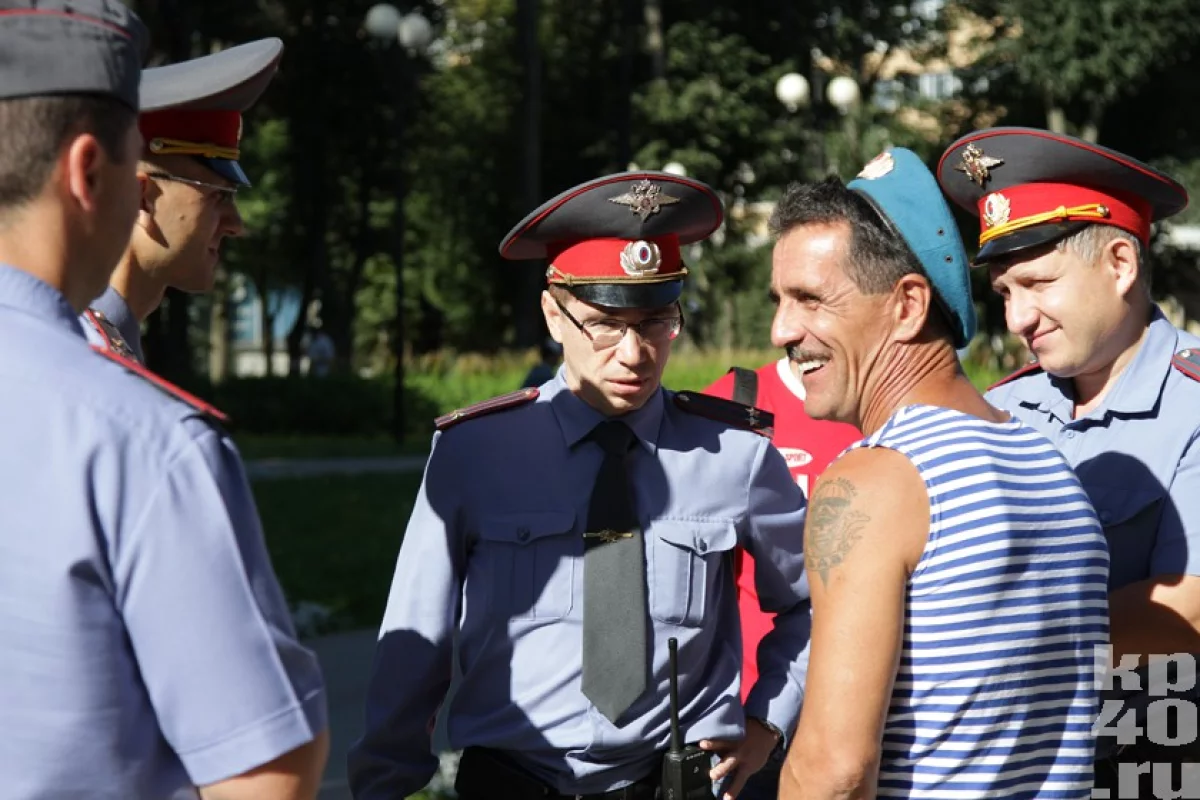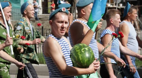 - Только что имела удовольствие наблюдать запрещенное шествие десантников по главной улице нашего славного города, - написала в F***book калужанка Елена МАНКЕВИЧ. - Десантники, видимо, были не в курсе того, что их запретили. Идут культурно, с бабами, цветами и детишками, медалями бряцают. В рядах наблюдается слаженность шага и похвальная трезвость. В кильватере у колонны болтаются милицейские машины сопровождения, две скорые помощи (а ну как кому заплохеет от волнительности момента) и огромный автозак, до времени пустой. Возник вопрос - из чего городские власти делали проблему? Зачем было запрещать и смущать умы сограждан? Ну прошли, ну водки попили.