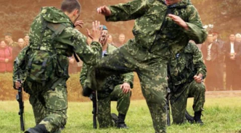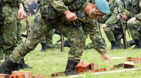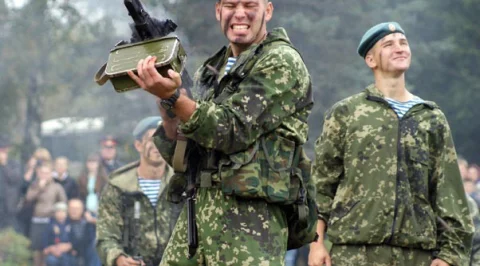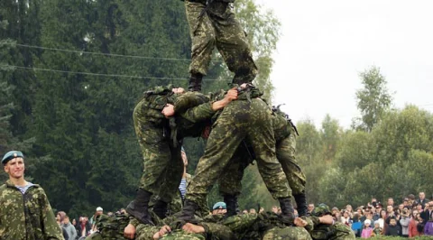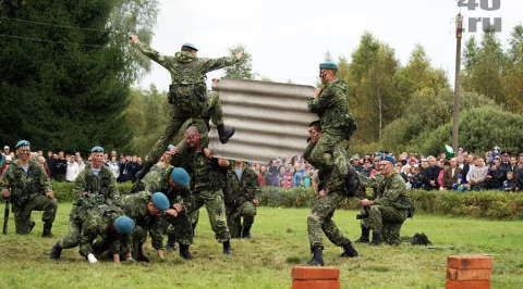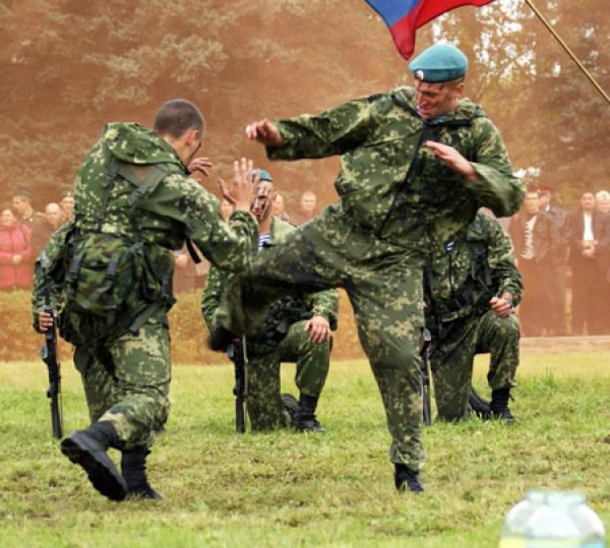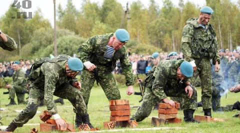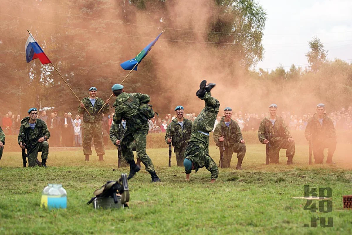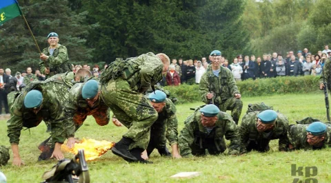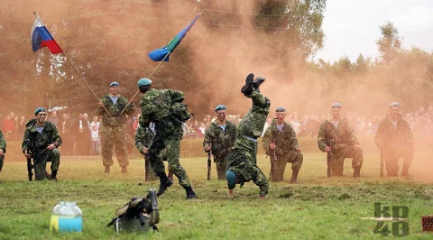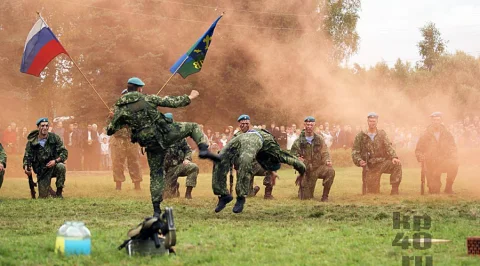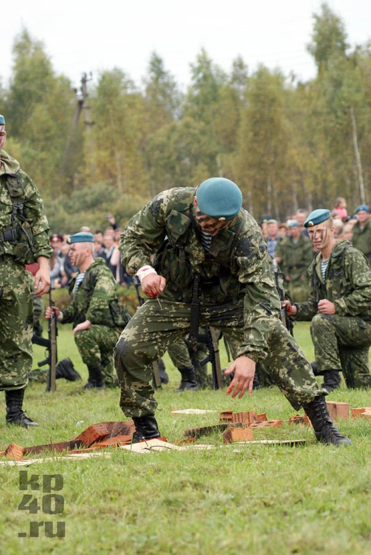 После минуты молчания современные бойцы продемонстрировали свои способности. Показательные выступления провели для того, чтобы доказать, что и сейчас воины готовы защищать свою страну. Бойцы ВДВ показывали приемы рукопашного боя, голыми руками разбивали кирпичи и забивали гвозди.