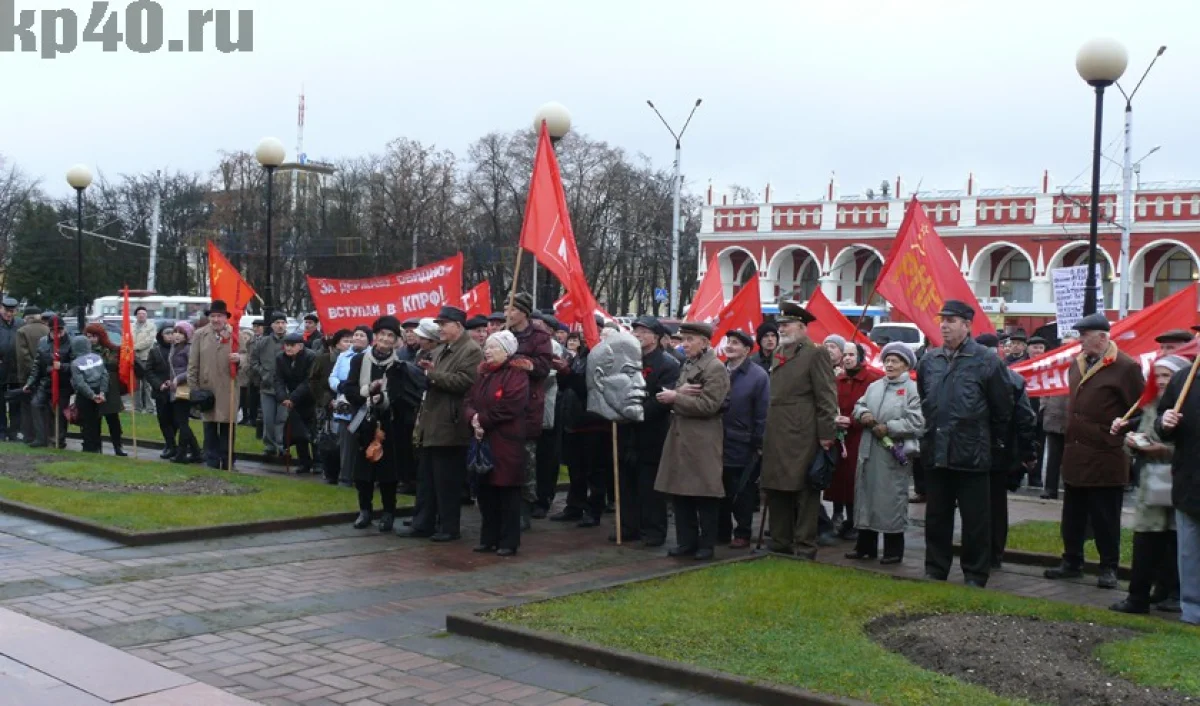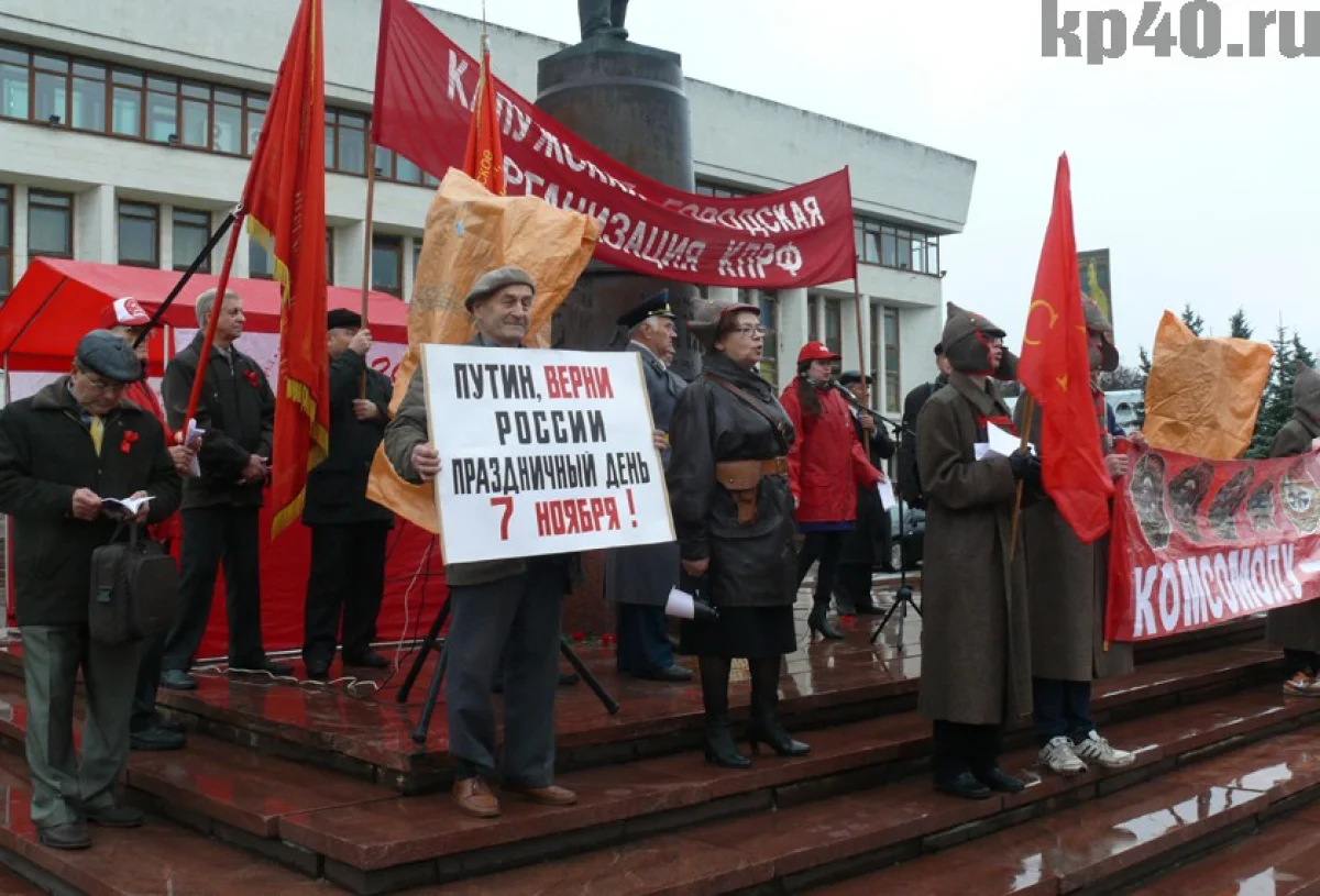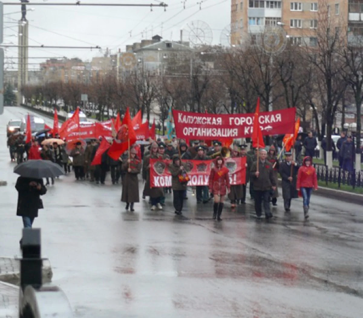 В четверг, 7 ноября, коммунисты Калуги отметили 96-годовщину Октябрьской революции шествием по центральным улицам города и митингом у памятника Ленину.