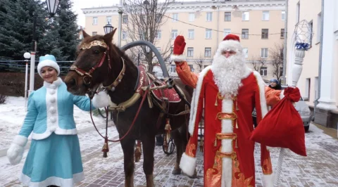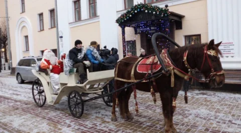 Дед Мороз со Снегурочкой проехали по Калуге на фаэтоне