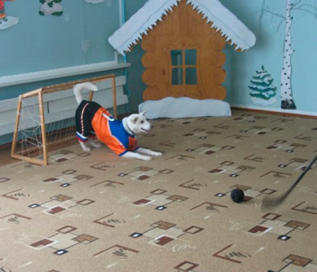 Дрессированные собаки сыграли в хоккей перед калужскими детьми