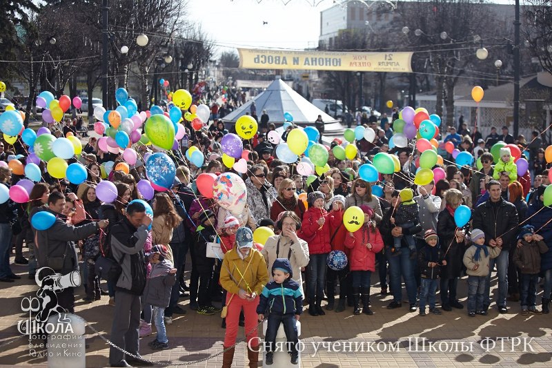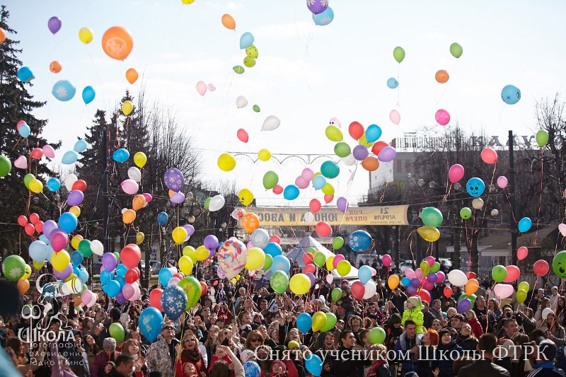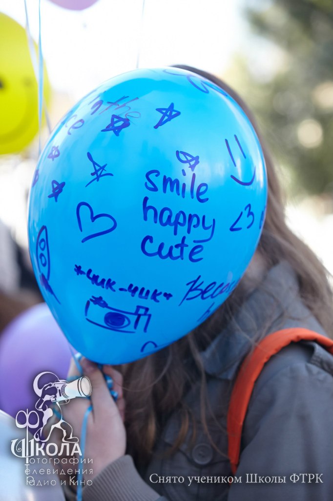 Как мы уже сообщали, шарики, наполненные гелием, нужно было приносить с собой. Многие участники захватили по несколько шаров, самые находчивые писали на них послания. По сигналу организаторов шарики отпустили в воздух под радостные крики.