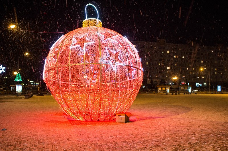 Мы уже рассказывали о том, что на прошлой неделе в Обнинске установили первую новогоднюю елку. А вскоре на проспекте Маркса появилась шестиметровая декоративная новогодняя игрушка. В ночь на вторник, 2 декабря, шарик впервые засветился. Жители уже окрестили его в соцсетях «шарик аленький».