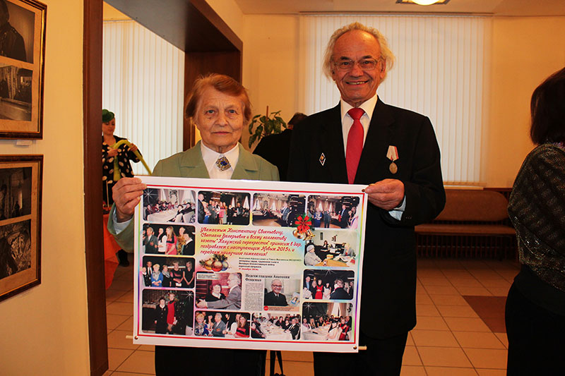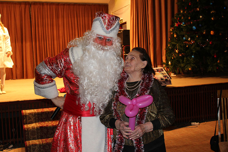 Тамара Петровна Панасова читала стихи собственного сочинения, Татьяна Владимировна Новикова пела песню про елочку, а Галина Анатольевна Кириченко угощала нас вареньем из физалиса. Мы дружно, хором поздравляли Марию Николаевну Соскину с 90-летием, Евгению Степановну Коневу с 93-летием, Надежду Ивановну Шилину с 75-летием, супругов Панасовых с 50-летием совместной жизни, а Веру Михайловну и Василия Александровича Лизун с изумрудной свадьбой! Все были веселые, счастливые, желали друг другу здоровья, благополучия в семьях и хорошего Нового года!