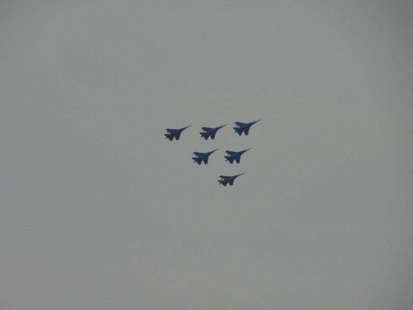 Понравились полёты истребителей и прохожим на перекрёстке улиц Театральной и Дзержинского. По свидетельству корреспондента «Калужского перекрёстка», некоторые даже кричали «Ура!».