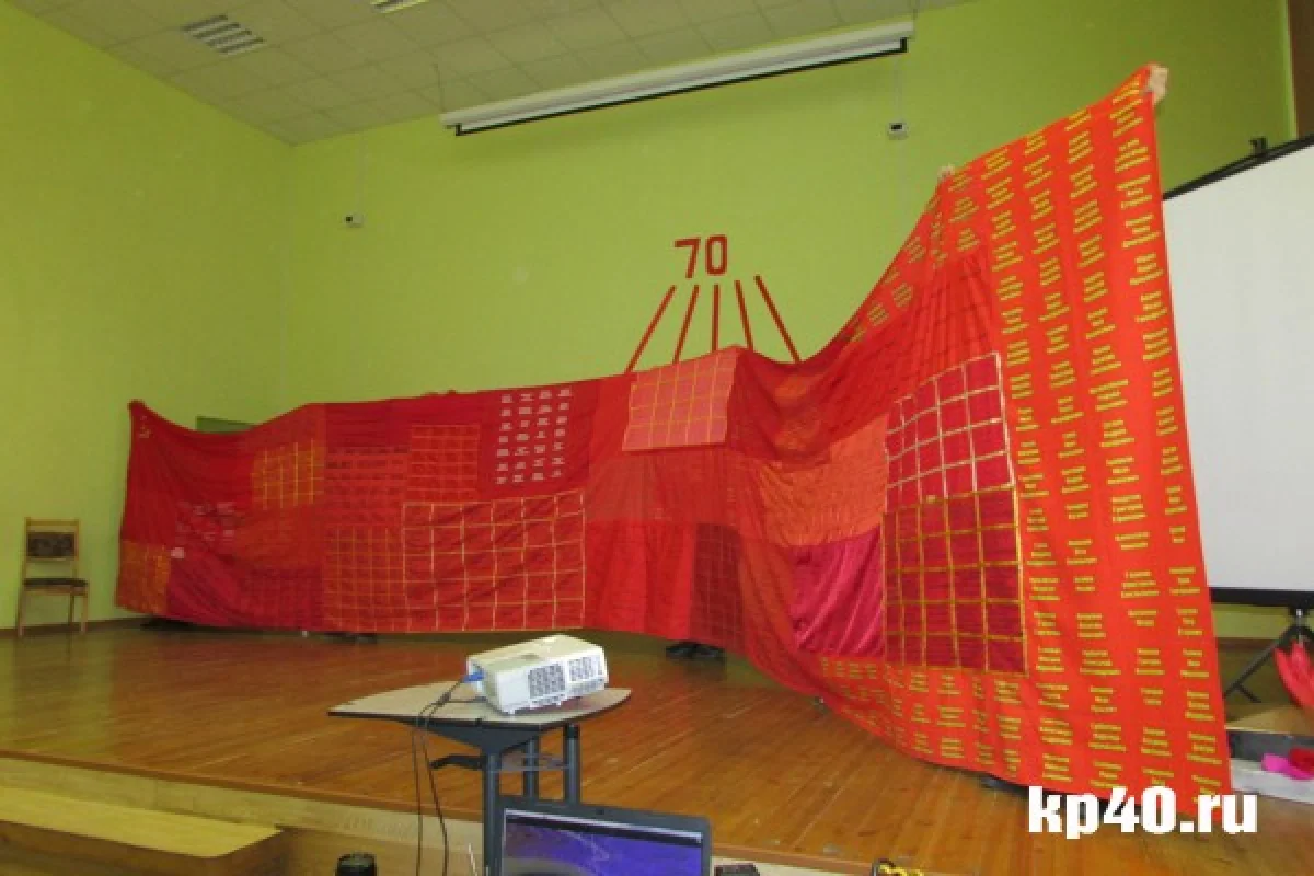 Флаг Победы поначалу думали пронести во время парада на 9 Мая, но он оказался слишком большим - в акции приняло участие более 500 человек. Он будет храниться в школьном музее, посвященном Великой Отечественной войне.
