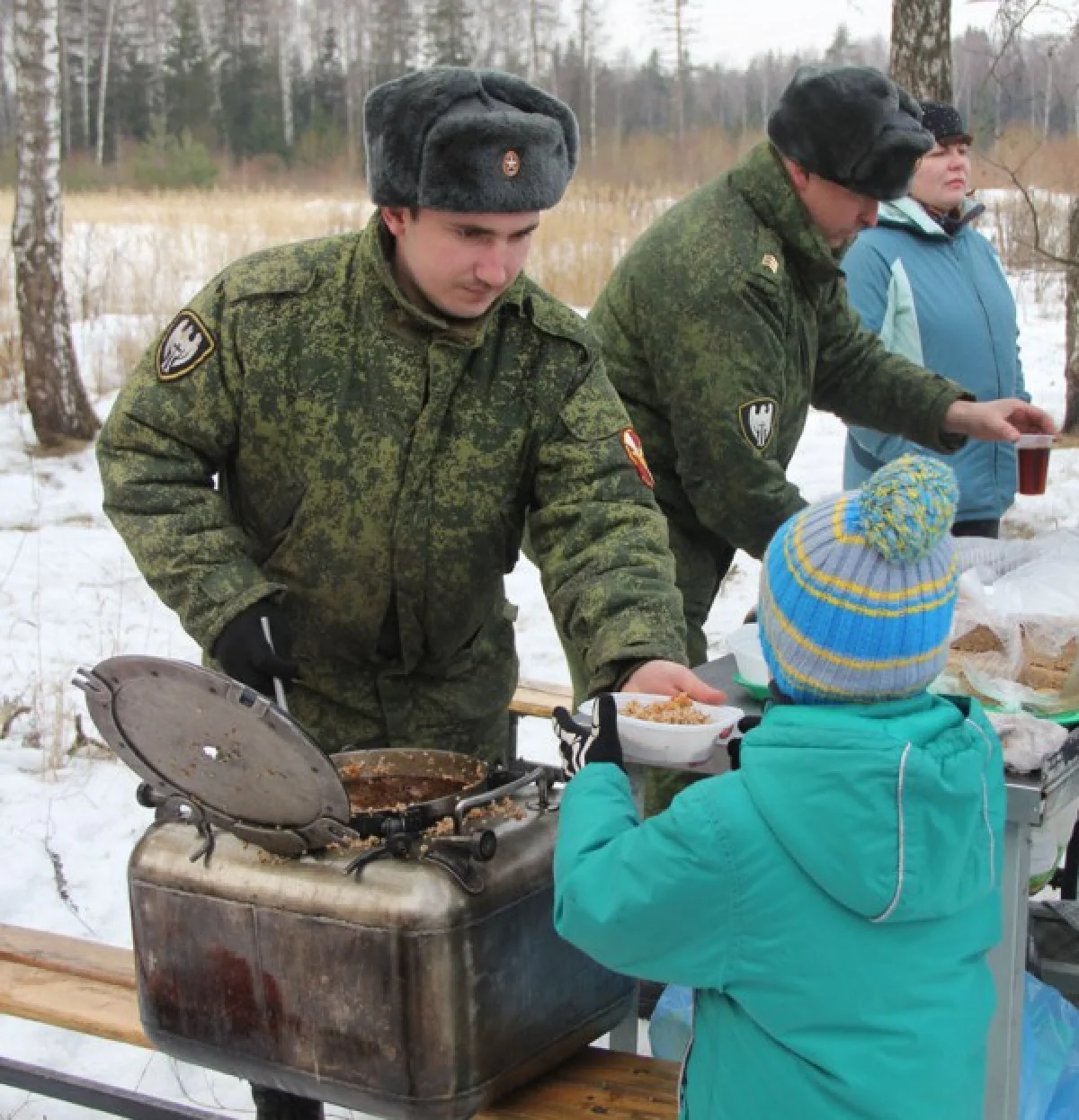 По окончанию соревнований всех участников и болельщиков мероприятия накормили настоящей солдатской кашей из военно-полевой кухни. Ароматная, свежеприготовленная каша была приятным угощением для уставших участников спортивного праздника.