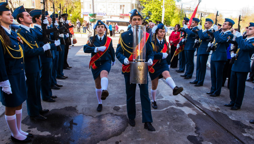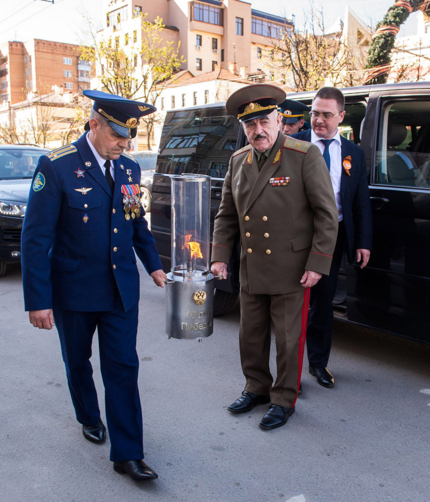 Днём в среду, 6 мая, в Калугу привезли частицу Вечного огня с могилы Неизвестного солдата у Кремлевской стены в Москве.