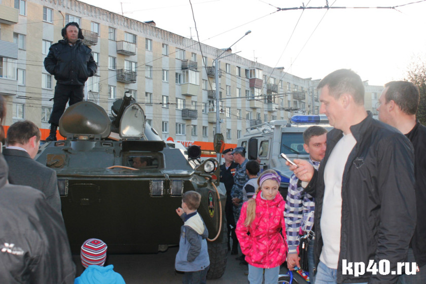 Возглавлять колонну должен был БТР-80. Машина «припарковалась» на кольце площади Победы со стороны улицы Степана Разина. Её тут же со всех сторон облепили восторженные мальчишки, которые разве что в люк не залезли, изучая военную технику.