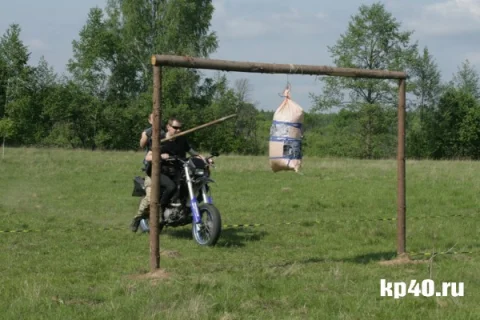 Конкурсная программа второго дня была не менее насыщенной, но рассчитанной, скорее, на физподготовку, нежели на эрудицию участников. Всех запланированых конкурсов, конечно, не провели – не хватило светового дня. Старались ориентироваться на просьбы собравшихся. Был конкурс на самый громкий выхлоп, метание покрышек, «Мотоциклисты против Обамы» (метание копья на ходу в мешок), соревнования по футболу и волейболу.