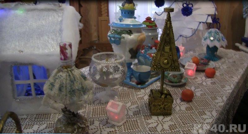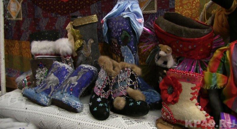 Здесь детишкам показали выставку из изделий ручной работы, которую калужане прислали на конкурсы. Посохи для Деда Мороза, варежки для снегурочки, и оригинальные валенки в виде мышки и теремка, оригинальные ёлки из железных деталей и крышек - всё можно посмотреть. Выставка теперь будет в Доме мастеров весь декабрь.