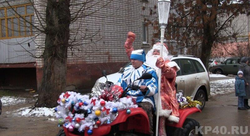 Больше всего малыши и их родители ждали появления Деда Мороза. Зрители то и дело отвлекались, выходя на дорогу и высматривая откуда появится главный герой. На празднество Дед Мороз приехал на украшенном мишурой и ветками ёлки квадроцикле, чем впечатлил взрослых и детей.