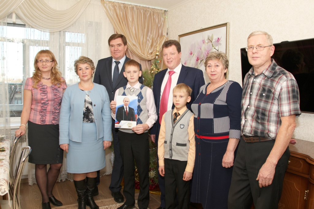 Главный федеральный инспектор по Калужской области Александр САВИН, градоначальник Калуги Константин ГОРОБЦОВ и начальник управления образования города Ольга ЛЫТКИНА вручили семикласснику фотографию, подписанную президентом, и подарки.