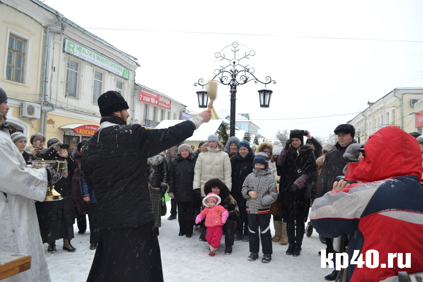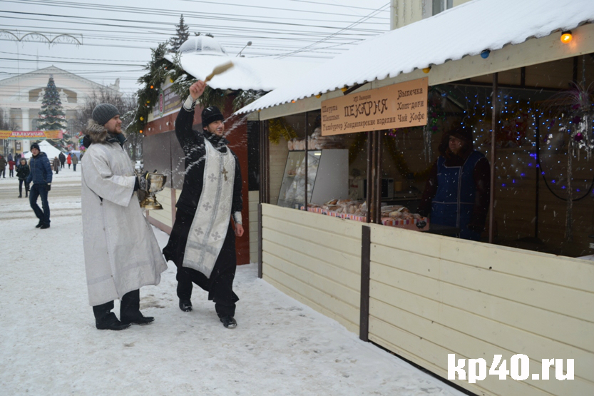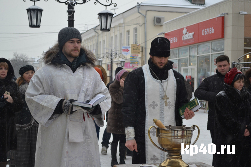 В среду, 6 января, в полдень на пешеходной части Театральной улицы в Калуге возле торговых рядов состоялся молебен. Он был приурочен к празднику Рождества Христова. После прочтения молитв священнослужители рассказали о важности этого праздника для каждого православного человека. Затем они окропили святой водой всех присутствующих, а также освятили торговые ряды.