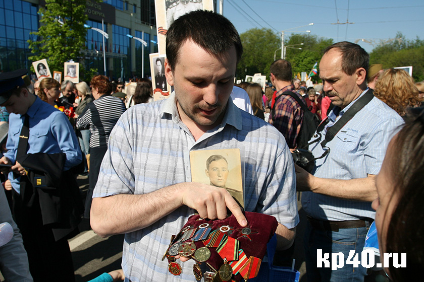 - Это награды моего деда, Николая Алексеевича Кузьмичёва, - рассказывает калужанин Дмитрий КУЗЬМИЧЁВ, показывая награды своего ветерана. – Ему было всего 19 лет, когда его призвали. Прошёл всю войну, стал офицером, Победу встретил в Берлине. Одну из наград, Орден Красной звезды, дедушка получил за спасение нескольких наших танков и солдат. Он расстрелял из автомата одной пулемётной очередью нескольких немецких солдат, вооружённых фаустпатронами, и офицеров. Но вообще о войне дед практически ничего не рассказывал. В акции «Бессмертный полк» участвуем впервые. Хочется, чтобы мой сын помнил о прадедушке, чтобы знал, что сделали для нас ветераны. Поэтому мы здесь. А после праздников повезём сына на могилу прадеда.