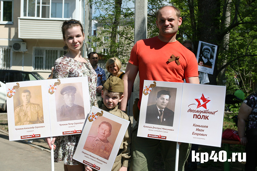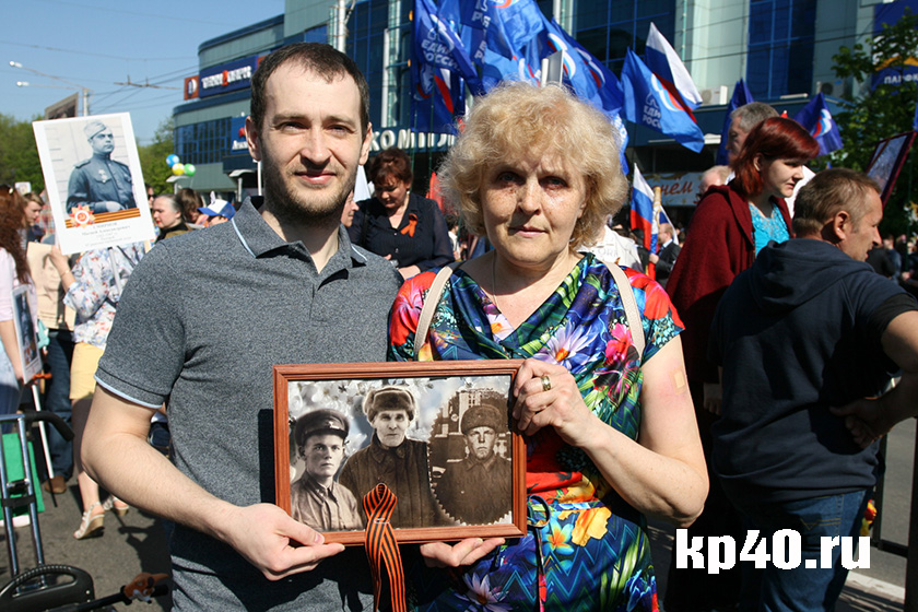 - Мы тоже идём в этом строю впервые, - говорит калужанка Наталья БЛАГОДАРОВА. – Изначально это была инициатива дочери Насти. Наших ветеранов зовут Михаил Иванович Захаров (это мой дедушка по маминой линии) и Виктор Александрович Благодаров (дедушка Насти). Виктор Александрович прошёл всю войну, был тяжело ранен в руку. После войны выучился на бухгалтера. Жил в подмосковном городе Жуковском, возглавлял местное отделение союза ветеранов, был одним из создателей районной Книги Памяти. Это был потрясающий, очень гостеприимный человек. Мой дедушка погиб под Ленинградом в 1942 году. Буду узнавать, где именно это случилось. Хотим с дочкой съездить на его могилу. А в следующем году планируем вместе с ней пройти с фотографией дедушки уже питерской колонне «Бессмертного полка».