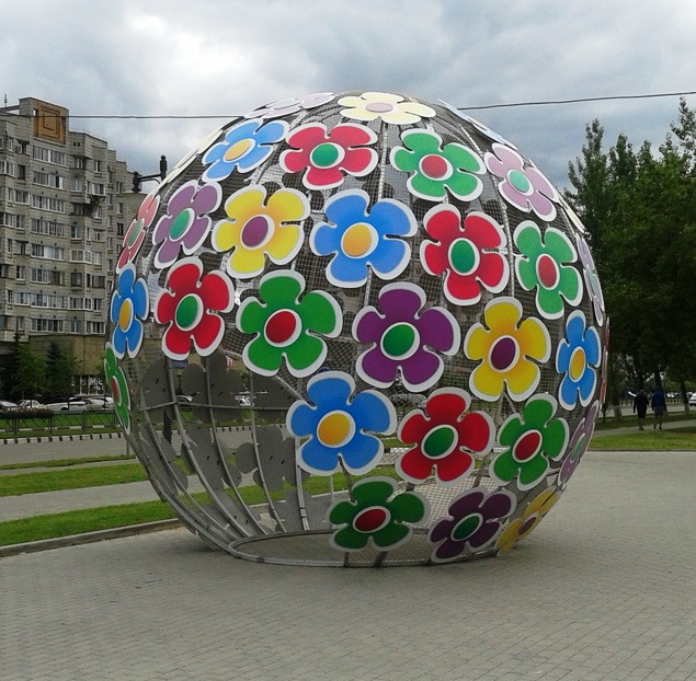 Перед празднованием Дня города в Обнинске придумали новое применение большому шару, который устанавливали в наукограде зимой. Вместо звёзд его украсили яркими цветами, позже там появятся ещё и бабочки.