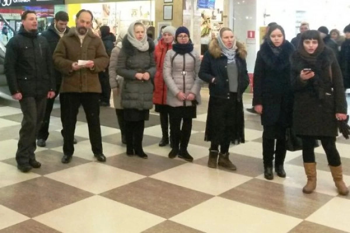 Впервые в Калуге прошел флешмоб, организованный епархией. Около 80 человек исполнили рождественские колядки в одном из торговых центров.