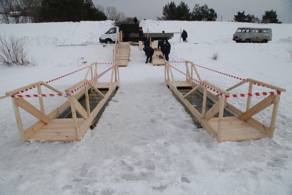 - В этом году конструкции для купелей сделали более облегченными, чем в прошлом, когда они появилась впервые, но они такие же крепкие, - сообщает во вторник, 17 января, городская управа Калуги. - Купелей будет две: левая – для мужчин, правая – для женщин. Глубина каждой - 1,2 м; ширина – 90 см; длина – 5,2 м.