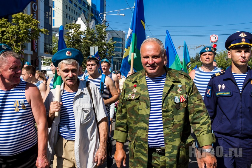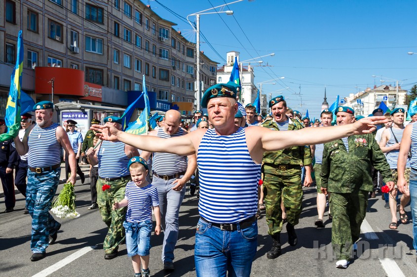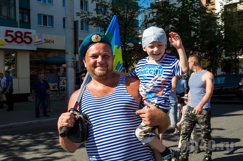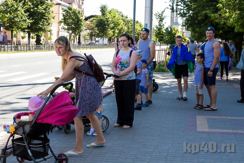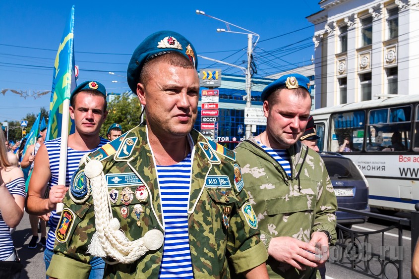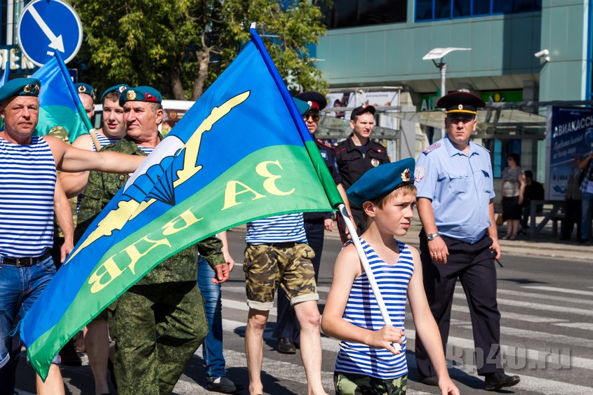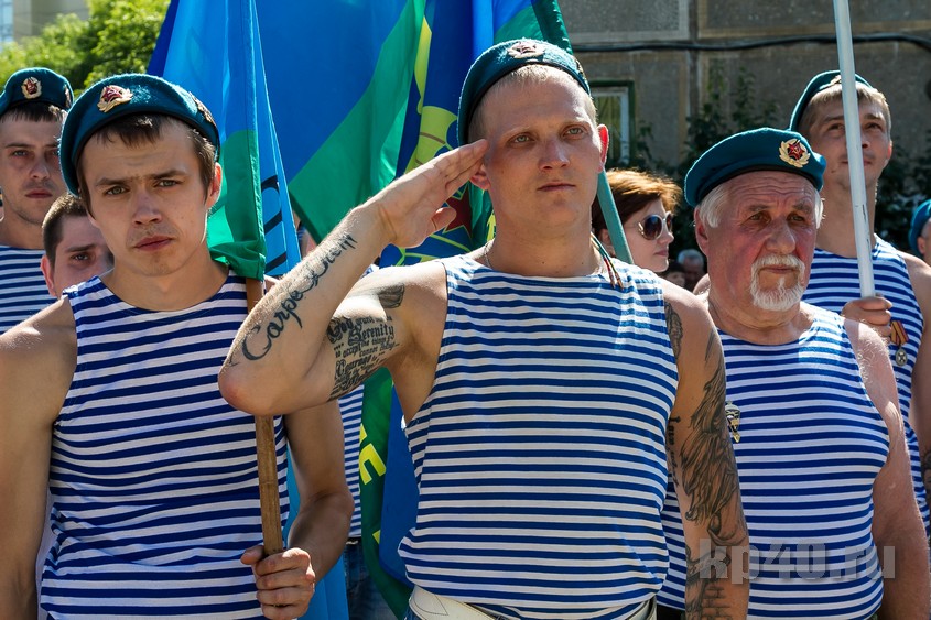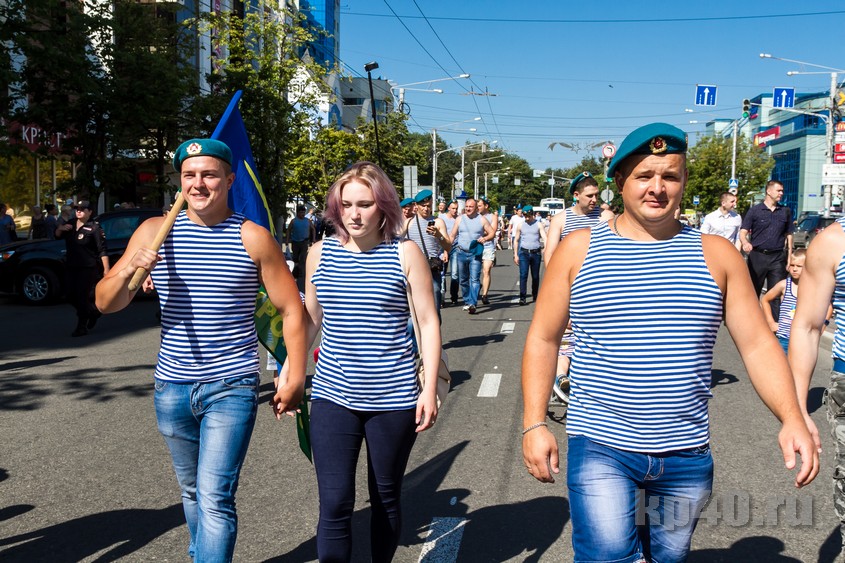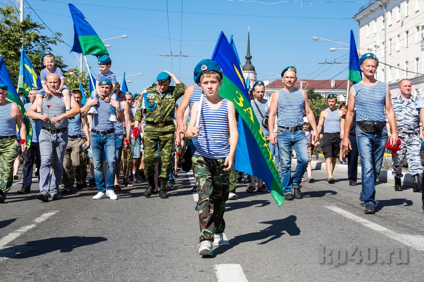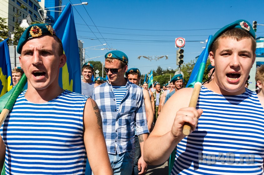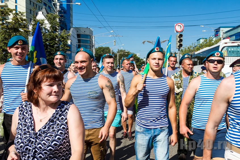 2 августа ровно в 10 утра над сквером Мира раздалось зычное: «Раз! Раз! Раз-два-три! Раз! Раз! Раз-два-три!» - и колонна примерно из 300 мужчин в тельняшках и голубых беретах, скандируя: «Слава ВДВ!» - направилась в сторону площади Победы. Так началось в Калуге традиционное праздничное шествие в честь 87-й годовщины образования Воздушно-десантных войск.