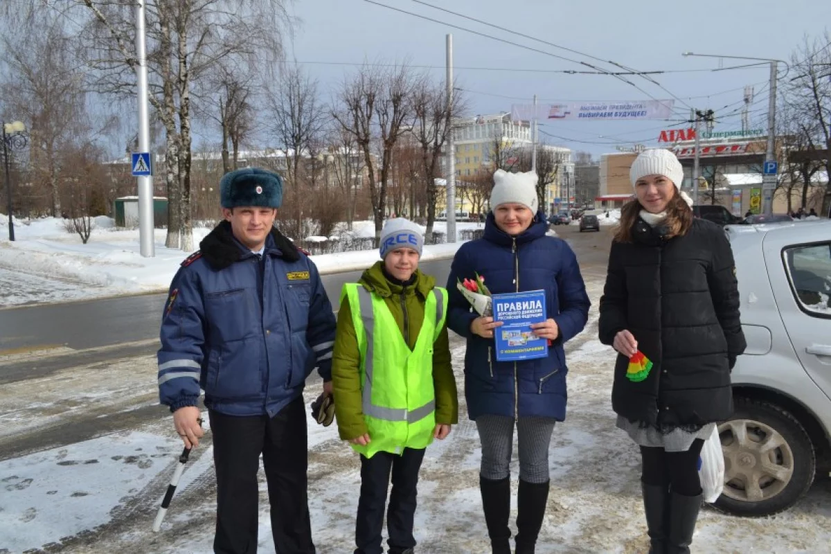 Инспекторы ГИБДД в среду, 7 марта, провели в Калуге традиционную праздничную акцию – женщинам-водителям вручали цветы и Правила дорожного движения.