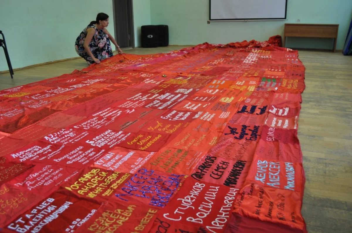 Справедливости ради стоит сказать, что эта идея не нова. Еще три года назад мы писали о подобной акции, которую придумали в лицее №48. Она называлась: «Флаг Победы». Школьники образовательного учреждения вышили на красных полотнах данные своих родных, которые воевали в Великую Отечественную войну. Из них сшили один огромный флаг, который до сих пор используют при проведении торжественных мероприятий, посвящённых Дню Победы.