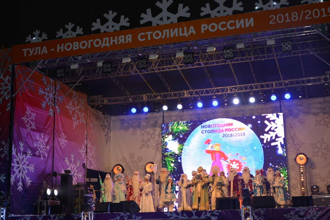 В этом году Тула объявлена новогодней столицей России. На битву съехались Деды Морозы из 9 городов: Санкт-Петербурга, Могилёва, Курска, Ярославля, Якутска и ещё нескольких. Из Якутии, правда, был Повелитель холода, но он в конкурсе не участвовал. Якутск был новогодней столицей в прошлом году, и они приехали передать эстафету Туле.