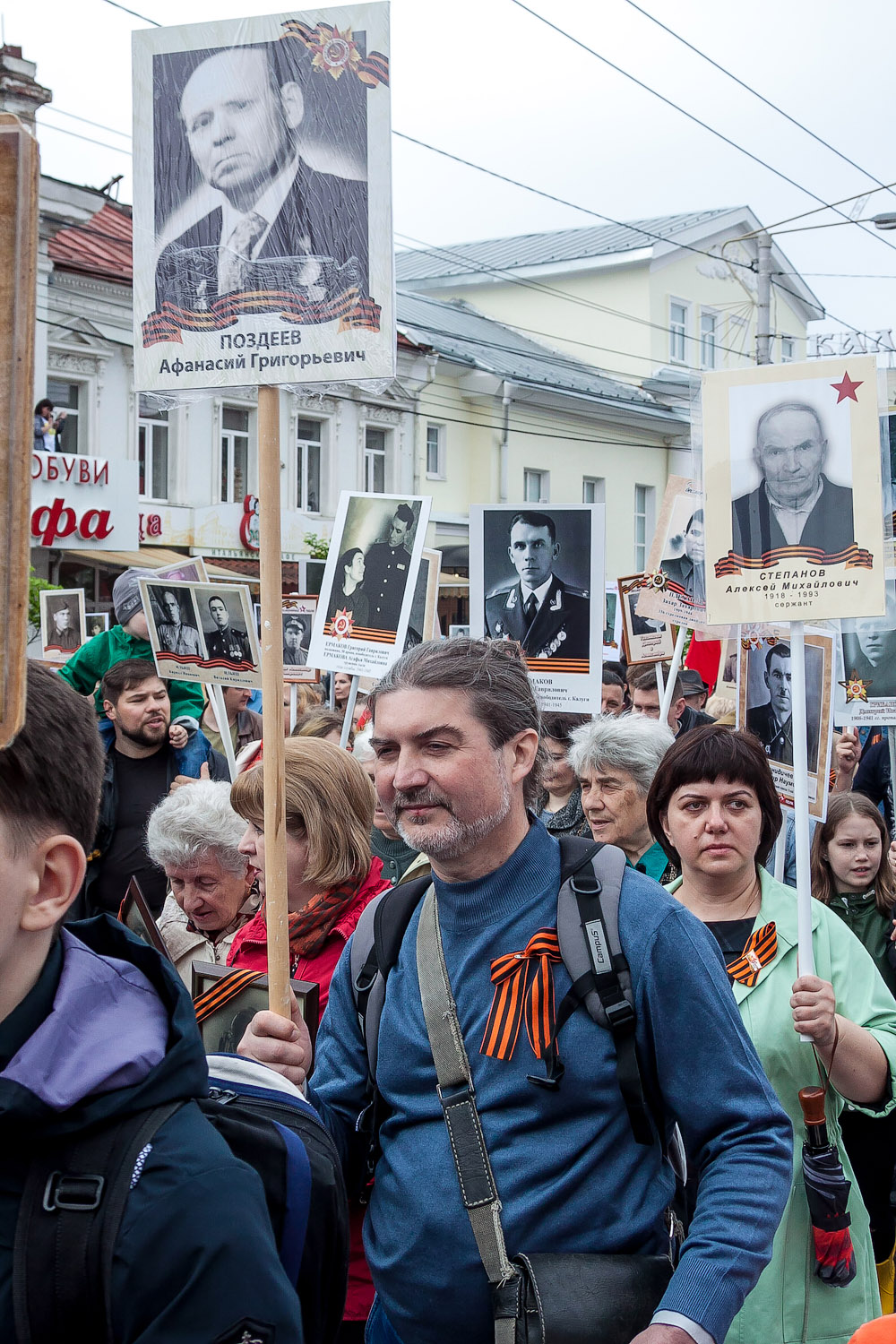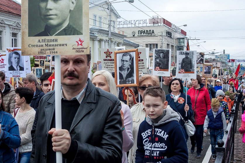Десятки тысяч людей в четверг, 9 мая, отмечали День Победы в Калуге. Традиционное праздничное шествие прошло по улице Кирова. Тысячи портретов участников Великой Отечественной войны пронесли калужане в рамках акции «Бессмертный полк». А вечером над городом прогремел Салют Победы. О том, как прошёл один из главных праздников страны – в фоторепортаже Сергея Константинова и Андрея Шаронова.