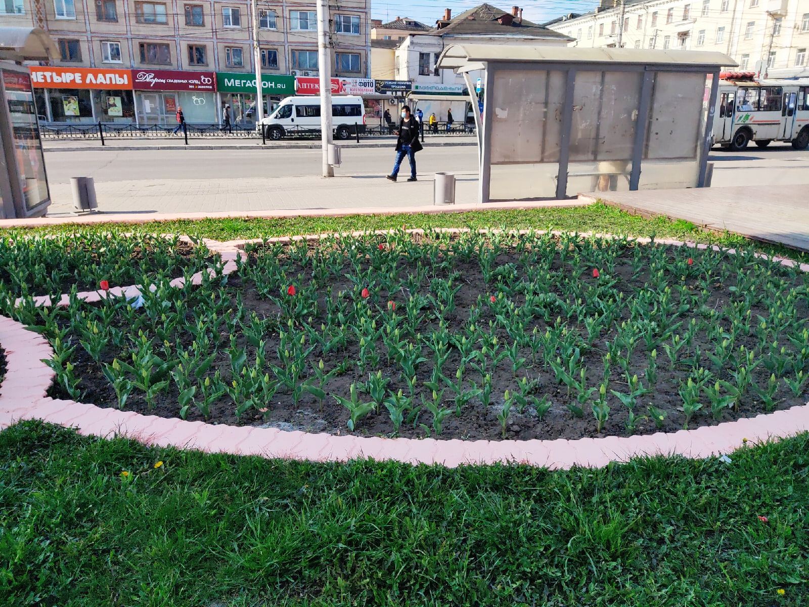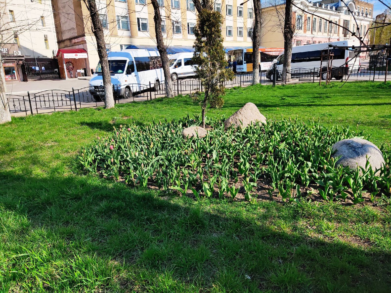 Тюльпаны уже начали распускаться. Осенью их высадили 300 тысяч штук. Фонтаны обещают включить 1 мая.