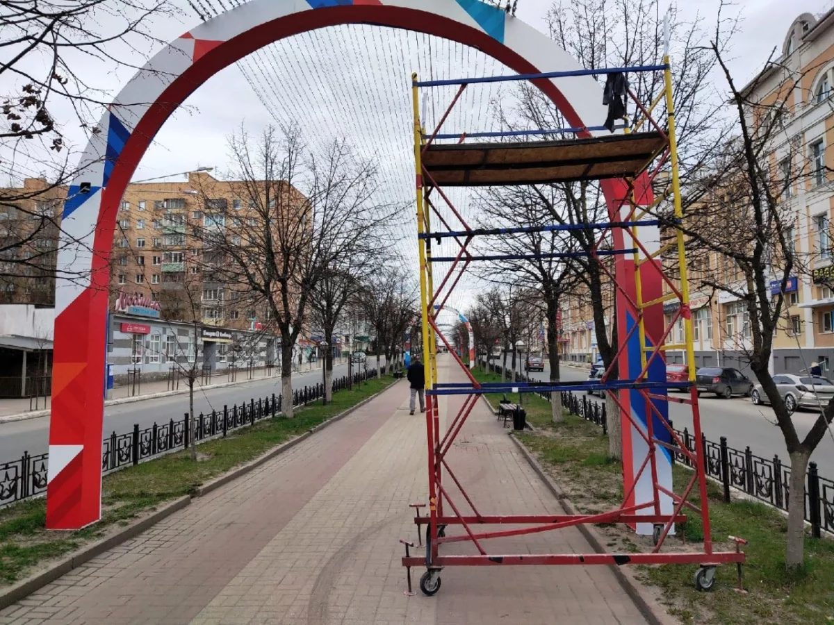 В данный момент продолжается установка арок на аллее от улицы Ленина до площади Победы. На центральных улицах устанавливают консоли с символами праздника. Также обещают установить традиционные разноцветные флаги. На клумбах города уже начали распускаться тюльпаны.