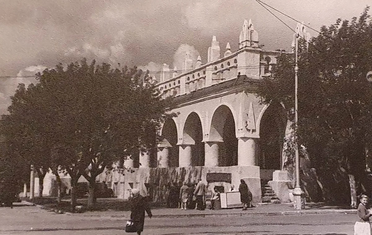 Дом с колоннами на ул. Комарова – излюбленное место съемки молодоженов в 1958 году выглядел так.