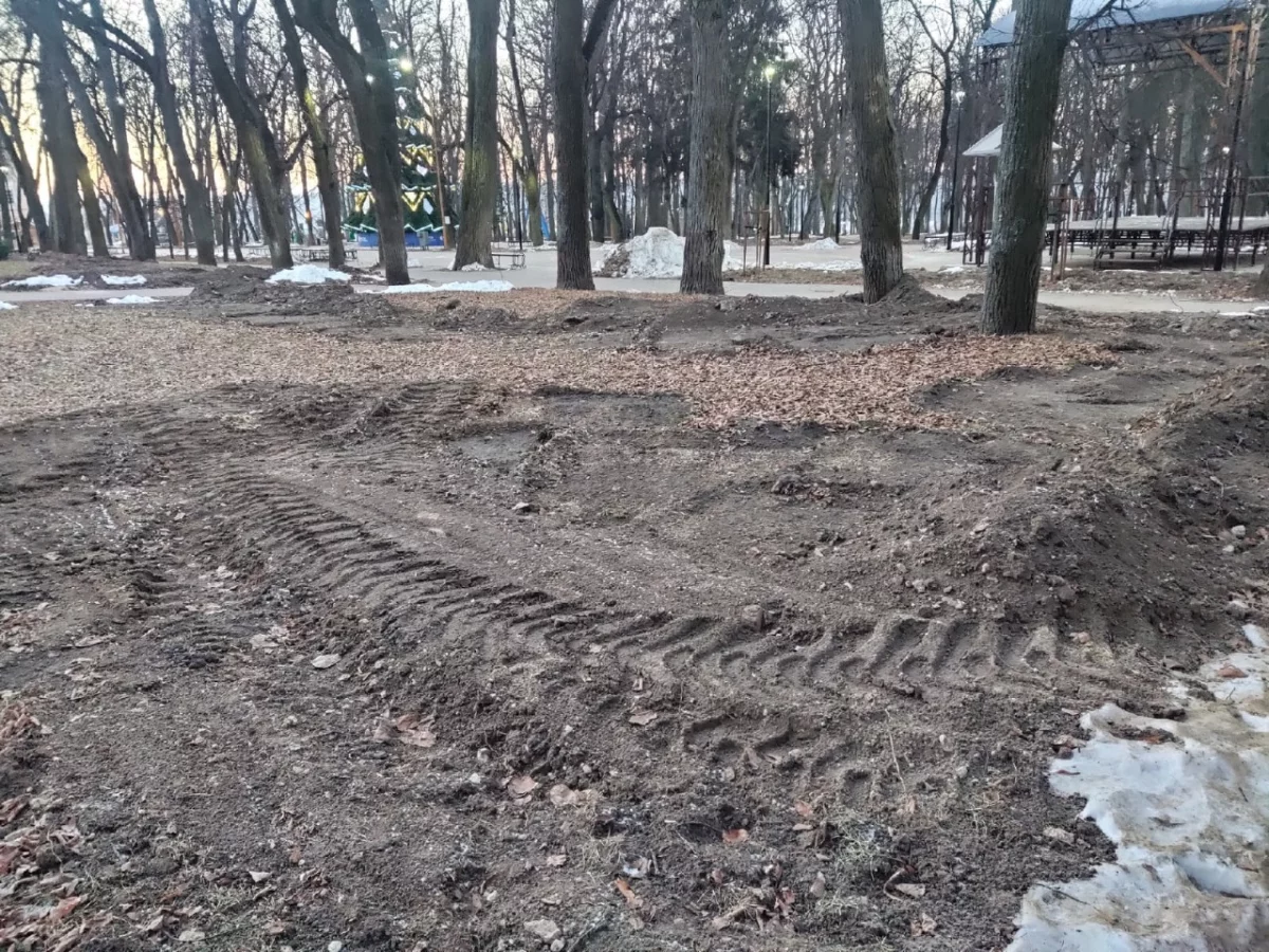 Работы по замене освещения в парке завершились совсем недавно, и ямы успели лишь слегка присыпать до наступления морозной погоды. Сейчас картинка совсем неприглядная.